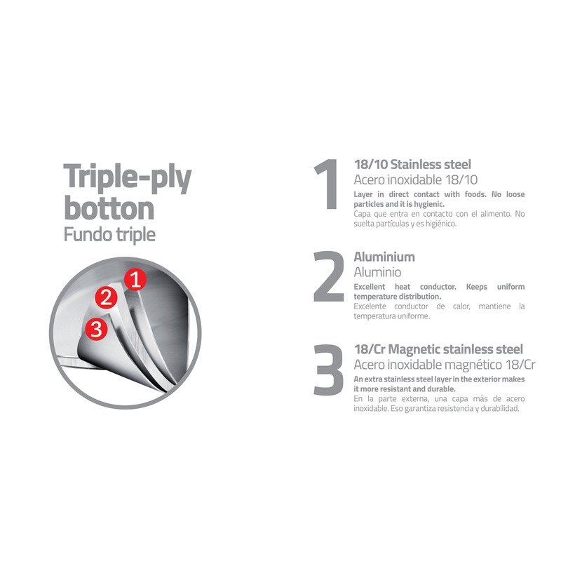 مع مقلاة ترامونتينا مقاس 30 سم من الفولاذ المقاوم للصدأ بمقبض طويل وقاعدة ثلاثية الطبقات ، يمكنك استكشاف الجانب المهني الخاص بك. يمكن استخدام مقلاة ترامونتينا المصنوعة من الفولاذ المقاوم للصدأ على الموقد وفي الفرن ، مما يعني أنه يمكنك البدء في الطهي على الموقد وإنهاء الطبق في الفرن (في درجات حرارة تصل إلى 260 درجة مئوية). يضمن شكلها الوظيفي سهولة الطهي ، وللمساعدة أكثر ، يمكنك الاعتماد على القاعدة التقليدية ثلاثية الطبقات (الفولاذ المقاوم للصدأ + الألومنيوم + الفولاذ المقاوم للصدأ) للطهي السريع والموحد حيث توزع الحرارة بالتساوي في جميع أنحاء المقلاة.
