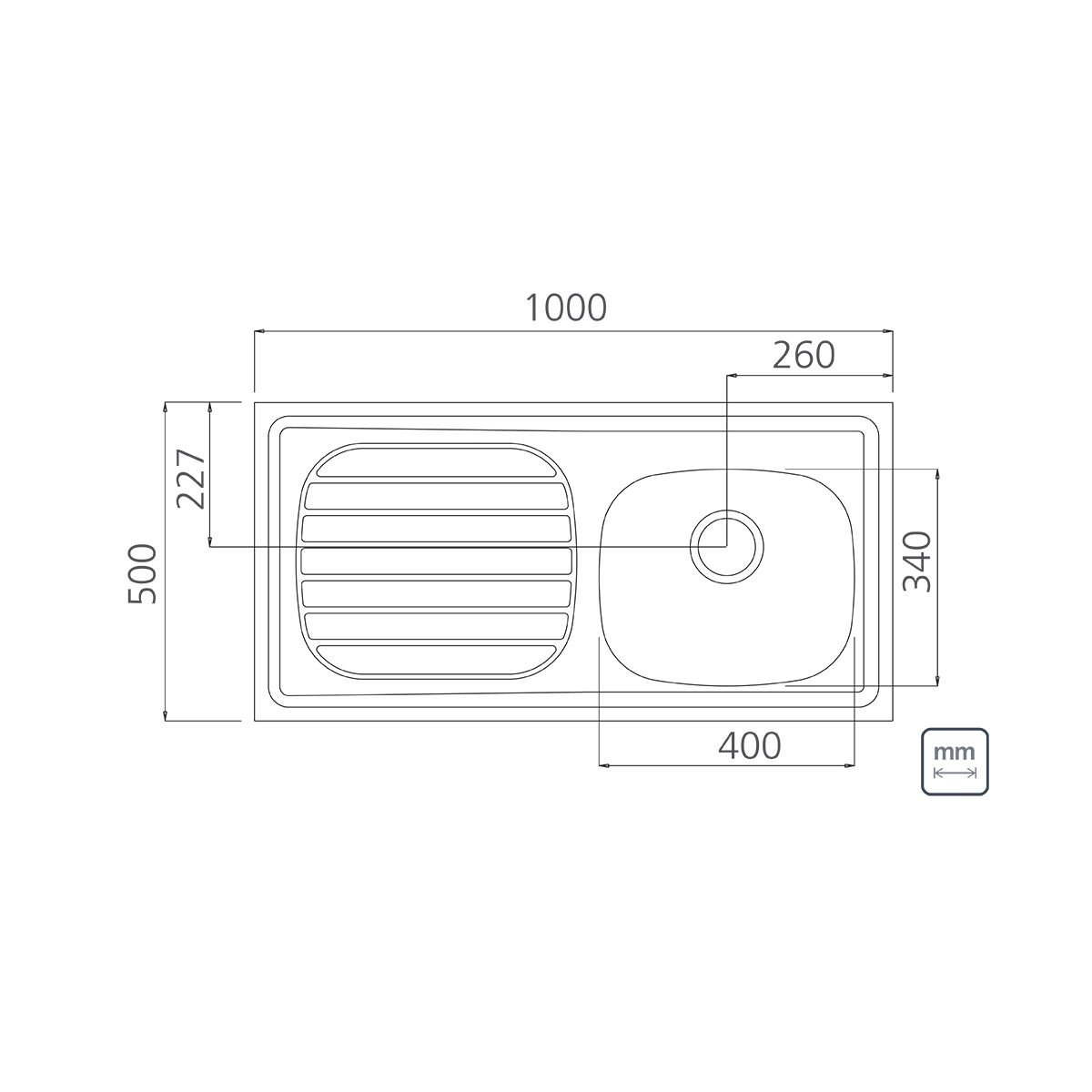 بالوعة مع 1 وعاء أيمن + مصفاة أطباق.
