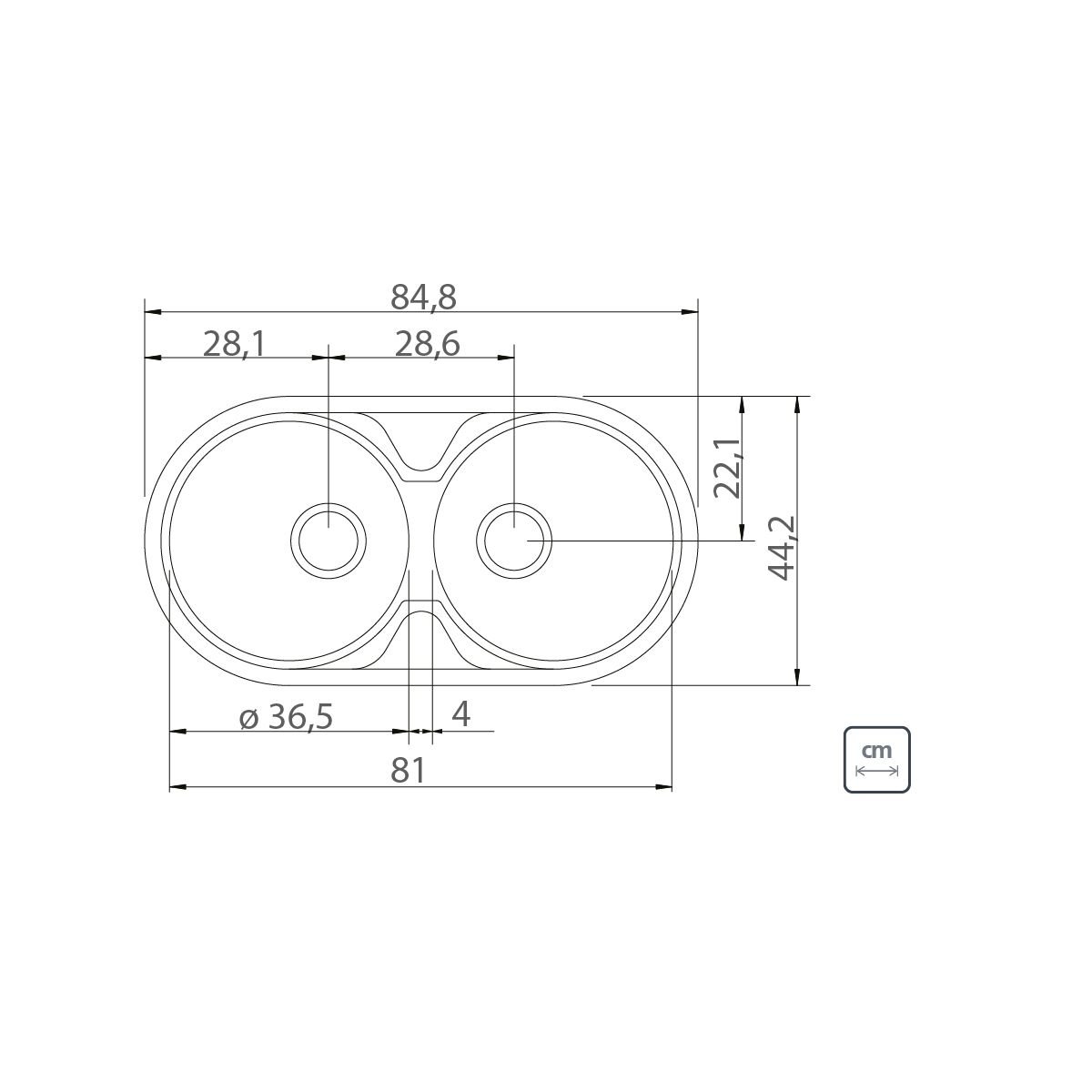 حوضين من الفولاذ المقاوم للصدأ Tramontina Luna Duo 2C 36 BS مع مرآة تلميع للتثبيت العلوي أو Undermount ، 84×44 سم