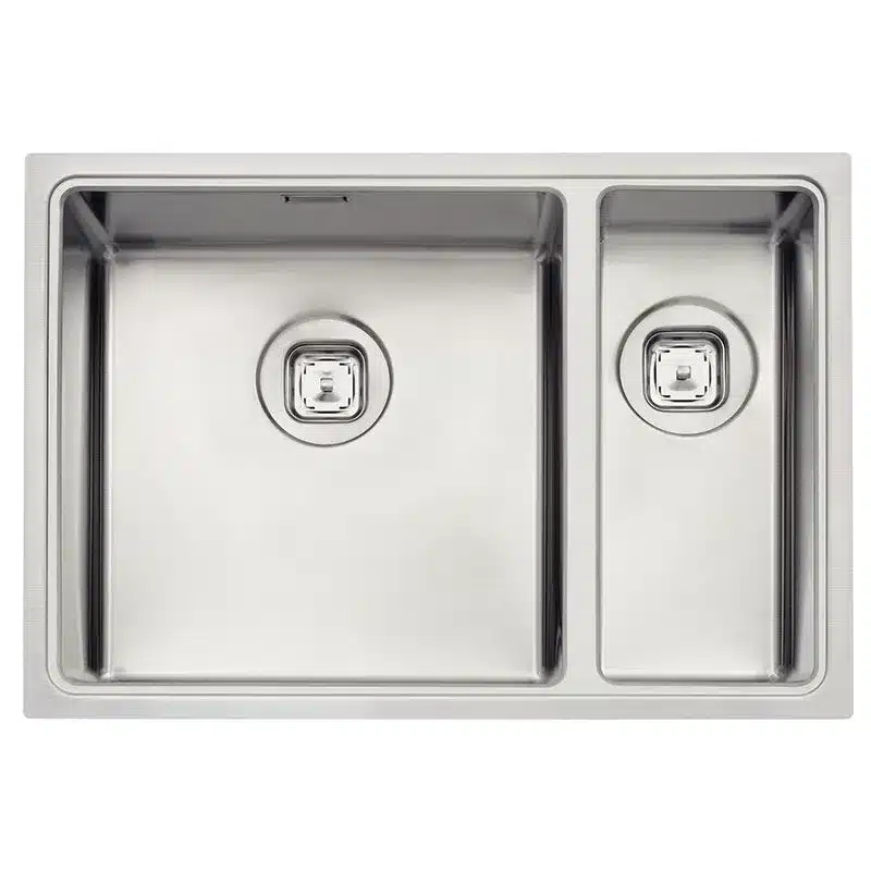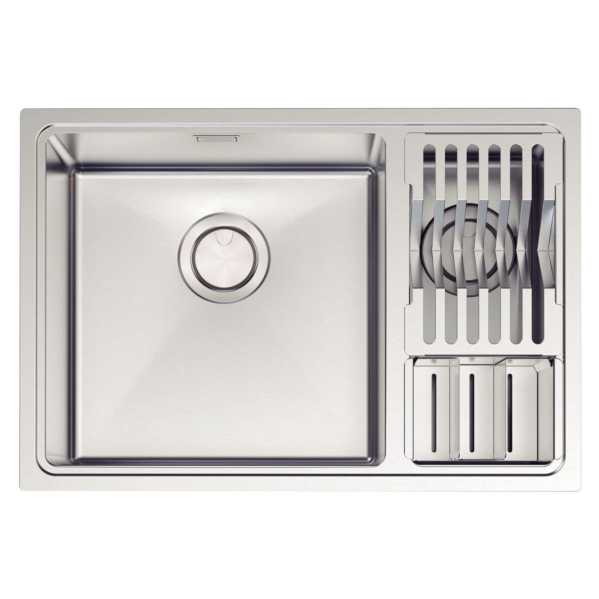 وعاء من الفولاذ المقاوم للصدأ AISI 304 بسمك 1 مم، بلمسة نهائية ساتانية. عمق الوعاء 205 + 148 مم. السعة: 32 + 9.5 لتر، نصف قطر داخلي 12 مم. الوعاء مزود بمادة لاصقة عازلة للصوت. الملحقات المرفقة: – صمام تصريف بقطر 4.5 بوصة مع فتحة فيض – صمام تصريف بقطر 4.5 بوصة – رف أطباق وكؤوس من الفولاذ المقاوم للصدأ. أبعاد القطع العلوية متوفرة للاطلاع عليها في “دليل المنتج” على الموقع الإلكتروني أو في نموذج القطع المرفق مع القطعة.