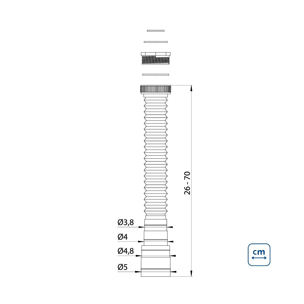 خرطوم تصريف مياه الحوض متعدد الاحجام 36سم الى 70 سم