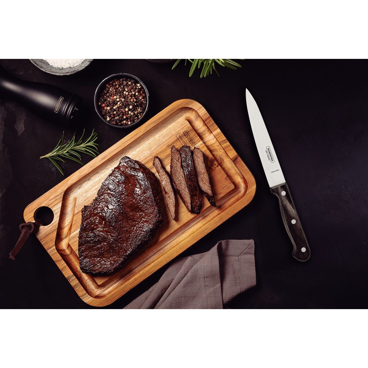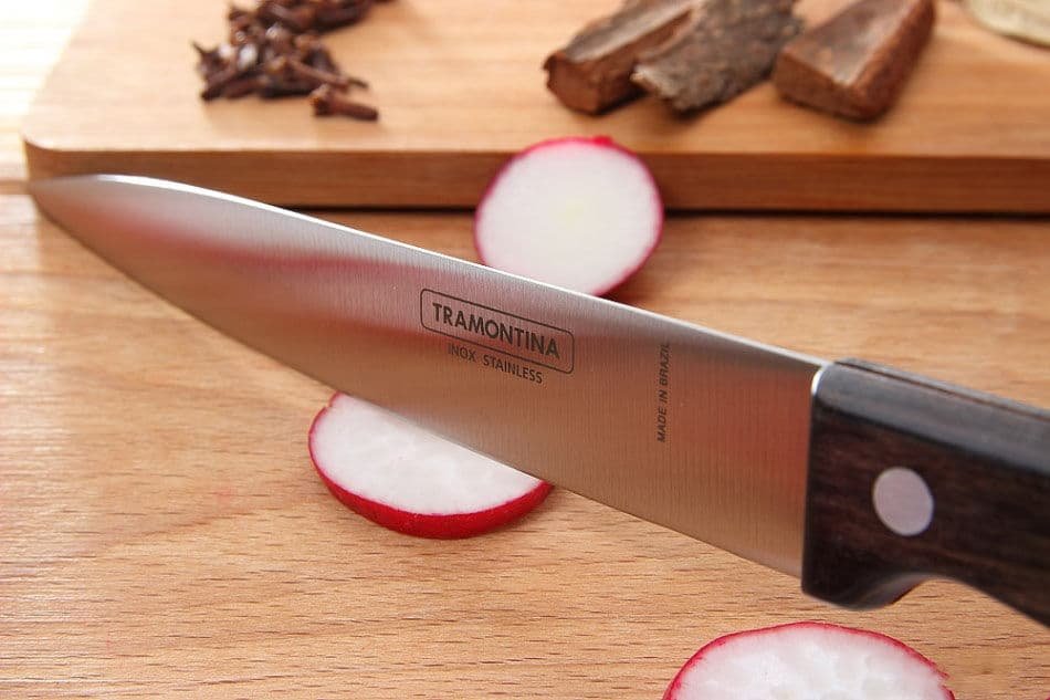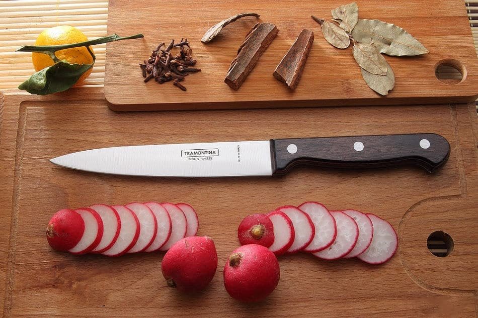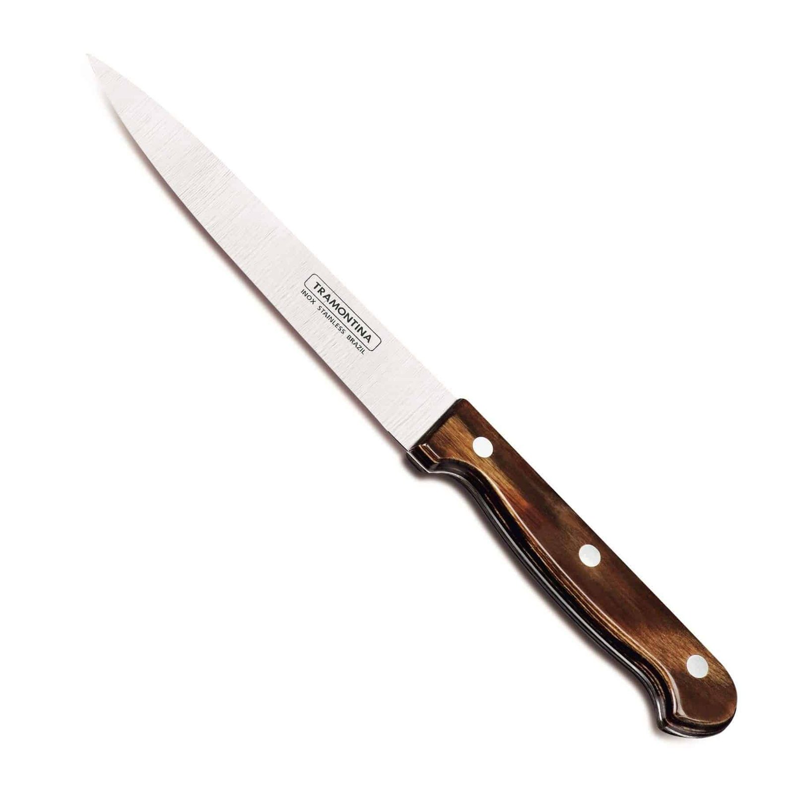سكين ترامونتينا متعدد الاستخدامات، مقاس 6 بوصات، مصنوع من الفولاذ المقاوم للصدأ ومقبض خشبي معالج باللون البني