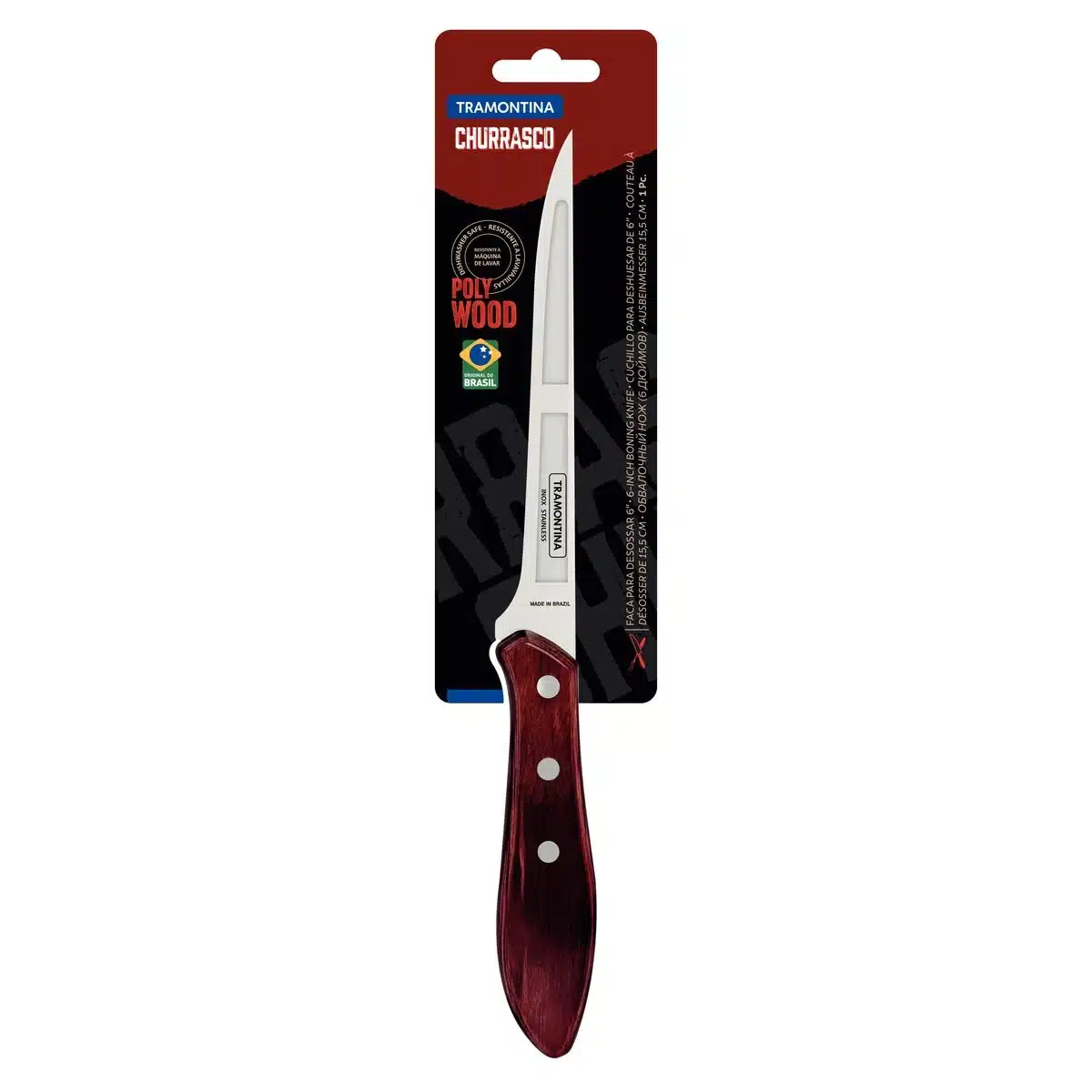 سكين ترامونتينا مع شفرة من الفولاذ المقاوم للصدأ ومقبض خشبي معالج من خشب البوليوود الأحمر، مقاس 15.24 سم6″