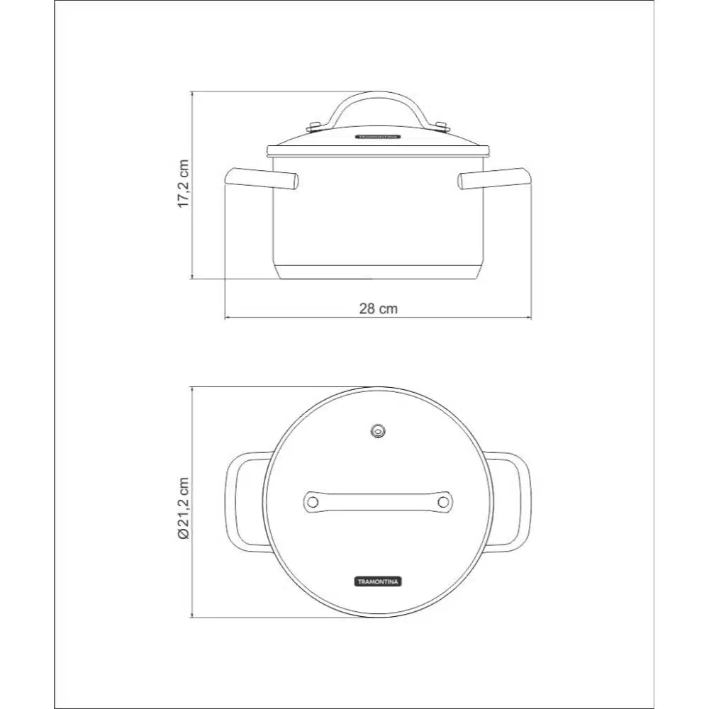 قدر ترامونتينا أونا المصنوع من الفولاذ المقاوم للصدأ مع قاعدة ثلاثية الطبقات وغطاء زجاجي، 20 سم وسعة 4.6 لتر