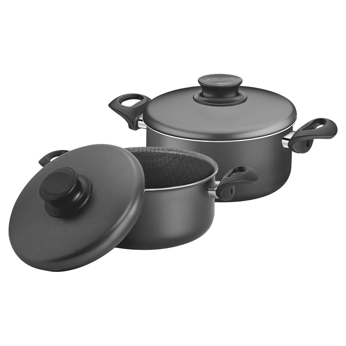 هيكل من الألومنيوم السميك يضمن طهيًا سريعًا ومتساويًا. طلاء ستارفلون ماكس غير اللاصق من الداخل والخارج سهل التنظيف، ومتين، وغير ضار. أغطية من الألومنيوم مزودة بفتحات تهوية للبخار. مقابض من الباكليت المقاوم للحرارة ومقابض من النايلون تضمن السلامة أثناء الاستخدام. آمنة للاستخدام في غسالة الأطباق، مما يُسهّل عليك روتينك اليومي.