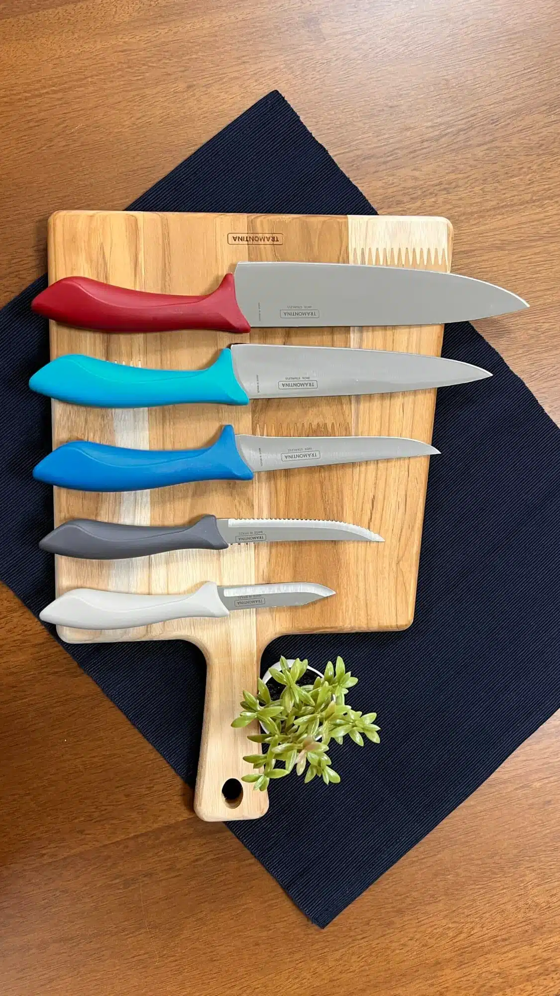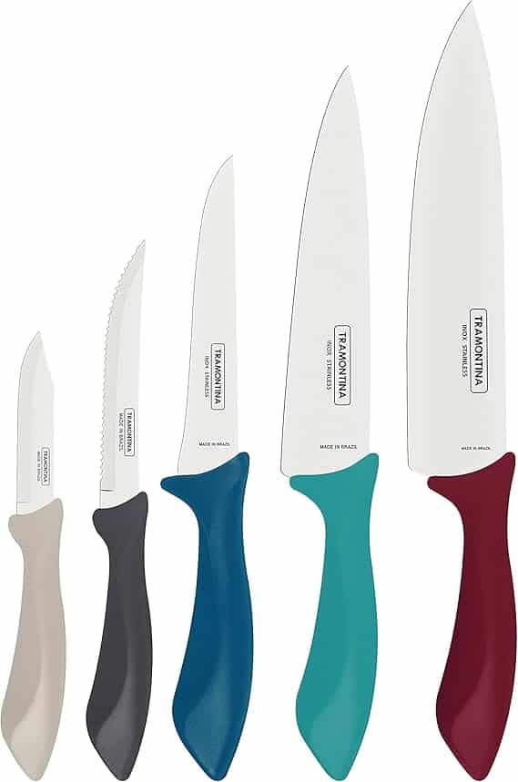 - استمتع بلحظات لا تصدق في المطبخ مع مجموعة سكاكين ترامونتينا المصنوعة من الستانلس ستيل المكونة من 5 قطع مع أذرع مسك ملونة من البولي بروبلين. لا غنى عنها لأولئك الذين يريدون السكاكين المناسبة للطهي. تحتوي هذه السكاكين على أنصال من الستانلس ستيل التي توفر المقاومة والمتانة. أذرع المسك المريحة مصنوعة من البولي بروبيلين، مما يضمن قبضة قوية ومريحة وآمنة حيث تناسب اليد بشكل مثالي.