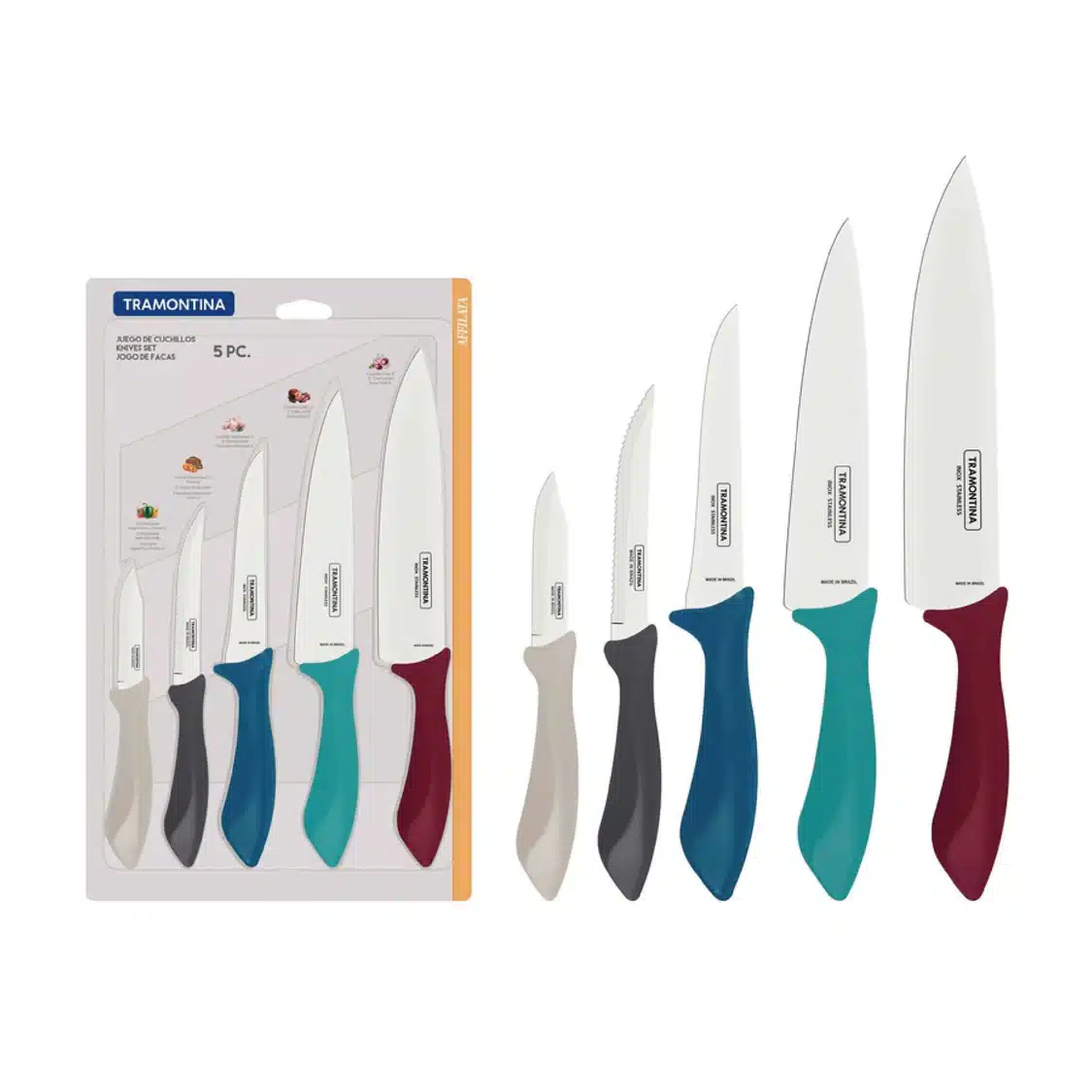 طقم سكاكين ترامونتينا ، 5 قطع، بشفرة من الستنلس ستيل المقاوم للصدأ ومقبض متعدد الألوان من البولي بروبيلين