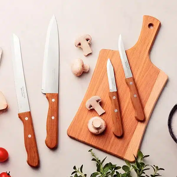 طقم سكاكين ترامونتينا الديناميكي مكون من 5 قطع مع شفرات من الفولاذ المقاوم للصدأ ومقابض من الخشب الطبيعي