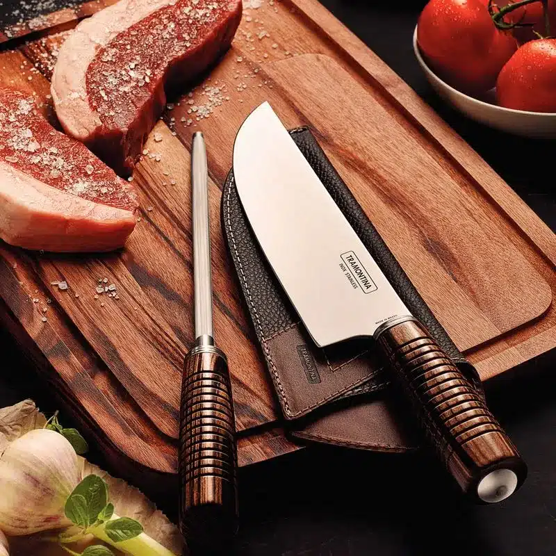 إذا كنت شغوفًا بالطهي وتبحث دائمًا عن أدوات تُسهّل روتين مطبخك اليومي، فأنت بحاجة لاكتشاف طقم سكاكين ترامونتينا المكون من قطعتين بشفرات من الفولاذ المقاوم للصدأ ومقابض من خشب البولي وود البني المعالج مع مبراة. بفضل شفرات الفولاذ المقاوم للصدأ المعالجة حرارياً، تتميز حافة القطع في هذه السكاكين بمتانة استثنائية، مما يعني أنك لن تحتاج إلى القلق بشأن شحذ سكاكينك كثيرًا. تضمن المبراة المرفقة المطلية بالكروم مع هود من الفولاذ الكربوني شحذًا دقيقًا وطويل الأمد، حتى تتمكن من الاستمرار في استخدام سكاكينك لفترة طويلة. تتميز مقابض خشب البولي وود المعالجة بمقاومتها للصدمات ودرجات الحرارة العالية، مما يضمن المتانة والسلامة أثناء الاستخدام. كما يوفر الغلاف الجلدي حماية لحافة السكين، مما يتيح لك حمل سكاكينك وتخزينها بأمان أكبر. ولجعل حياتك أسهل، فإن هذه السكاكين آمنة للغسل في غسالة الأطباق، حتى تتمكن من التركيز على ما يهم حقًا: صقل مهاراتك في الطهي!
