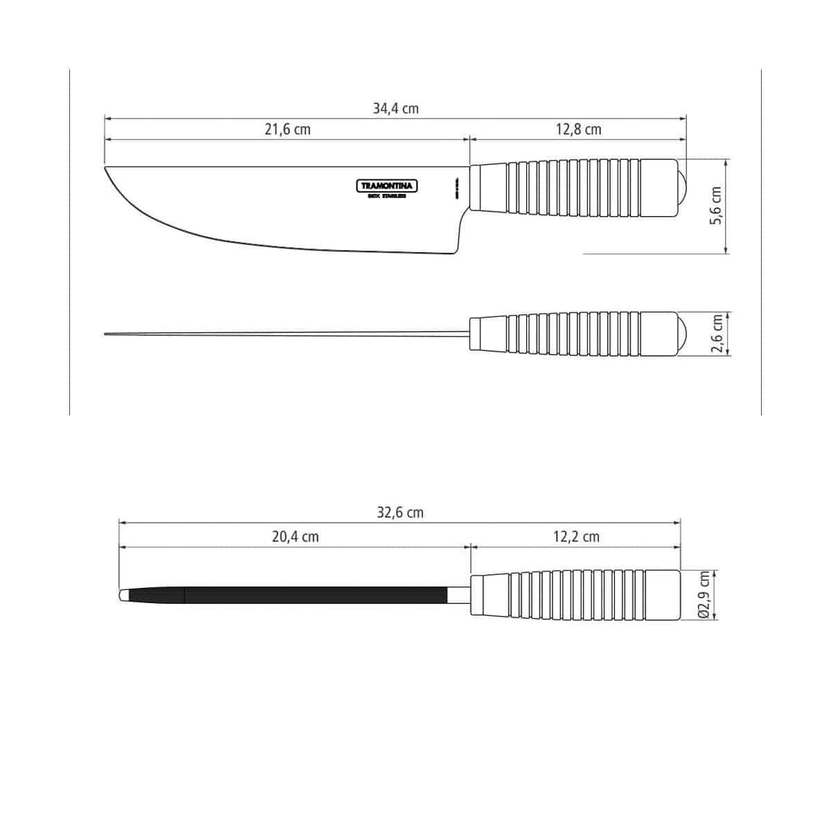 طقم سكاكين ترامونتينا من قطعتين بشفرات من الفولاذ المقاوم للصدأ ومقابض من خشب البولي وود البني المعالج مع مبراة