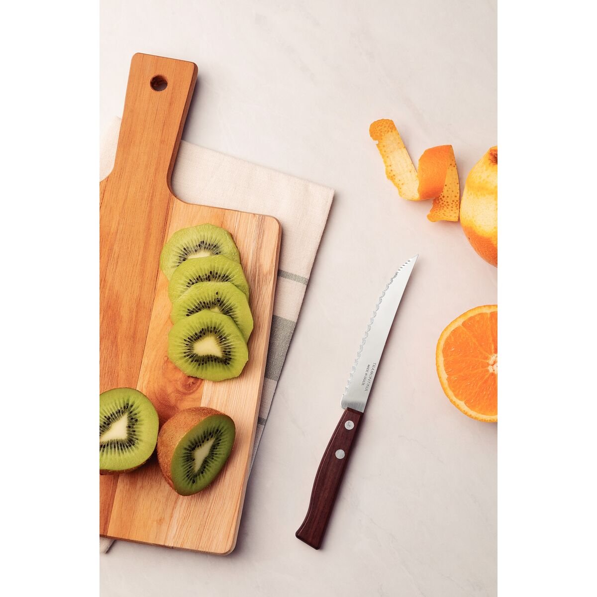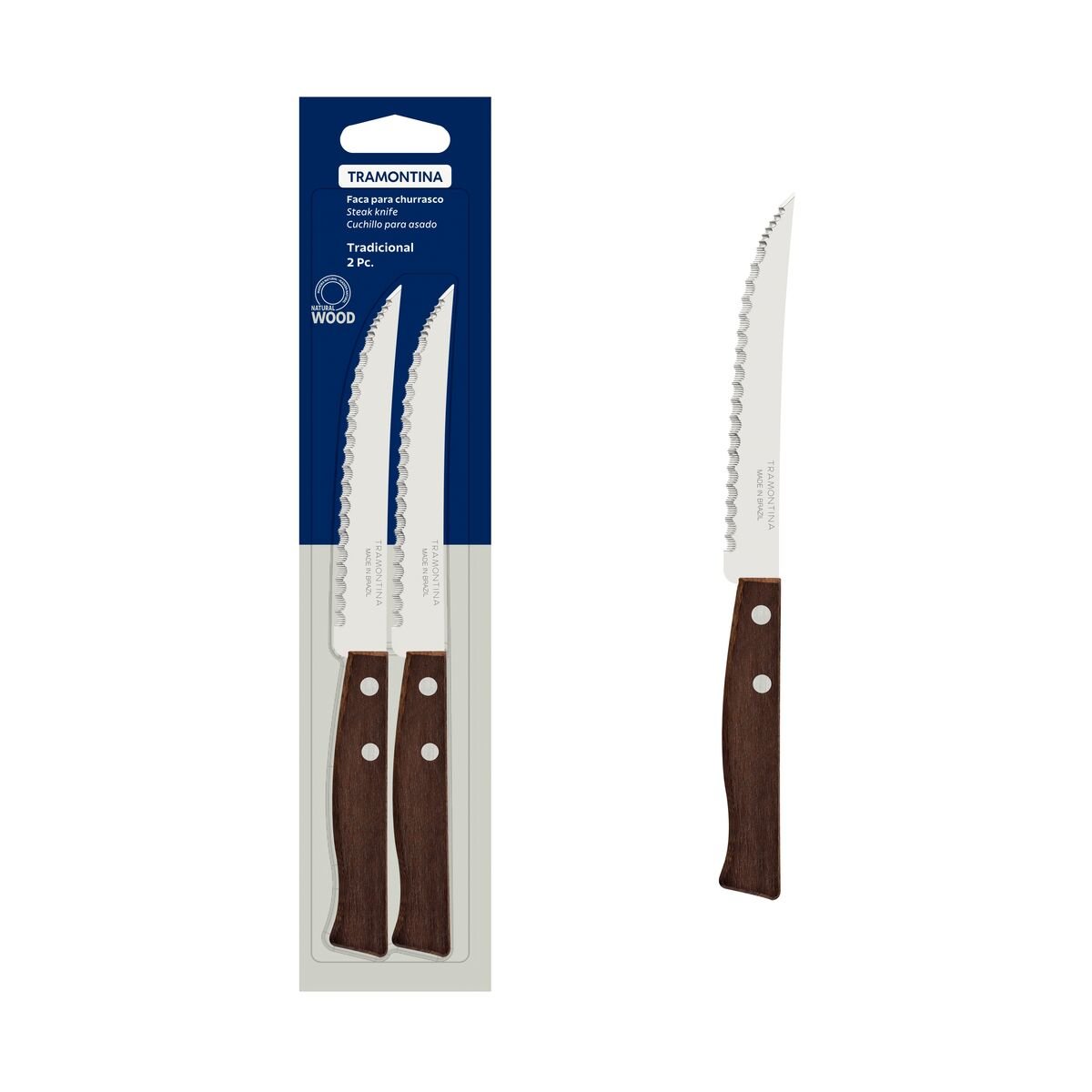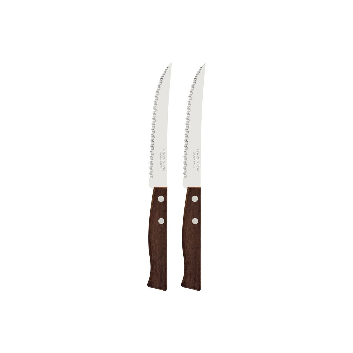 طقم سكاكين شرائح اللحم التقليدية من ترامونتينا بشفرات من الفولاذ المقاوم للصدأ وحافة مسننة دقيقة ومقابض من الخشب الطبيعي، قطعتان