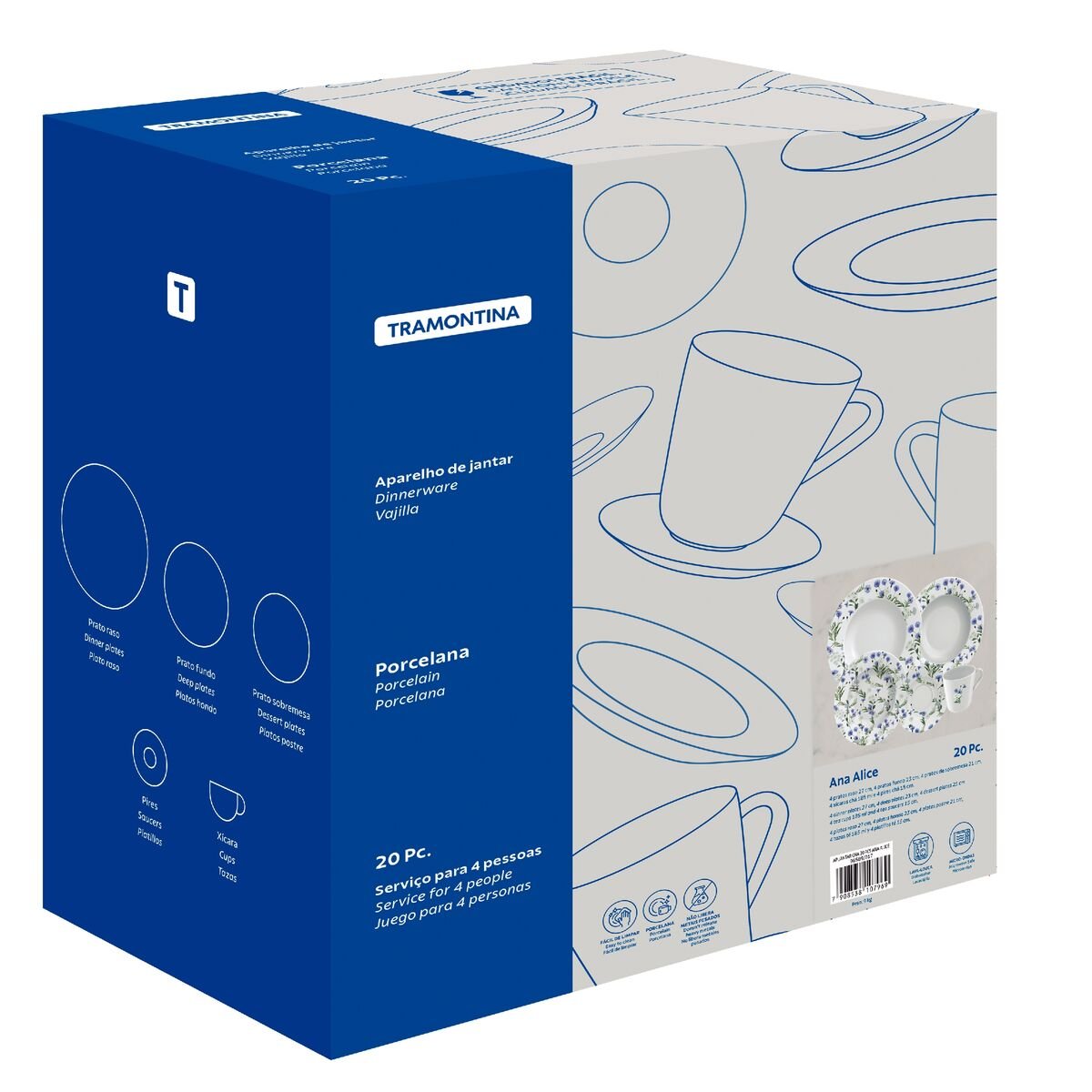 طقم عشاء ترامونتينا آنا أليس من البورسلين المزخرف، 20 قطعة