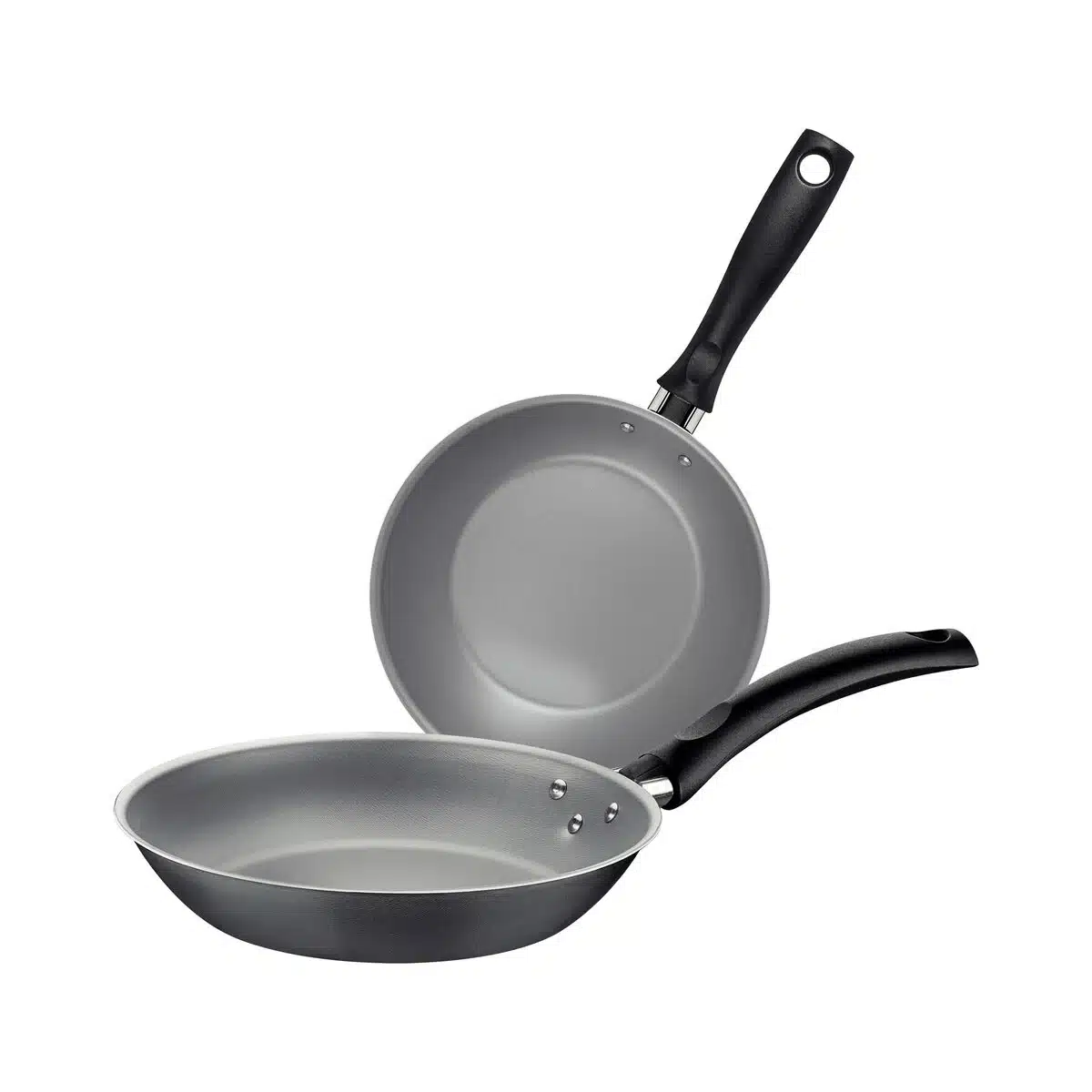 طقم مقالي ألومنيوم للقلي من ترامونتينا توريم مكون من قطعتين مع طلاء صحي 100% غير اللاصق الداخلي والخارجي بلون الرصاصي