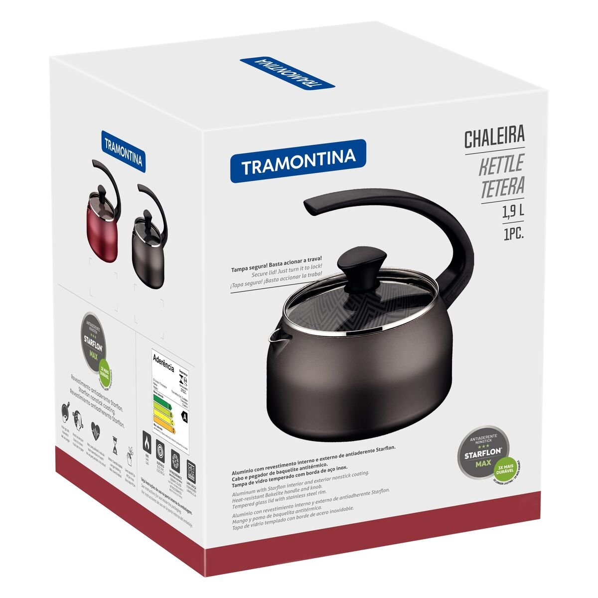 غلاية ترامونتينا من الألومنيوم الأحمر سعة 1.9 لتر مع طلاء ستارفلون ماكس الداخلي والخارجي غير اللاصق