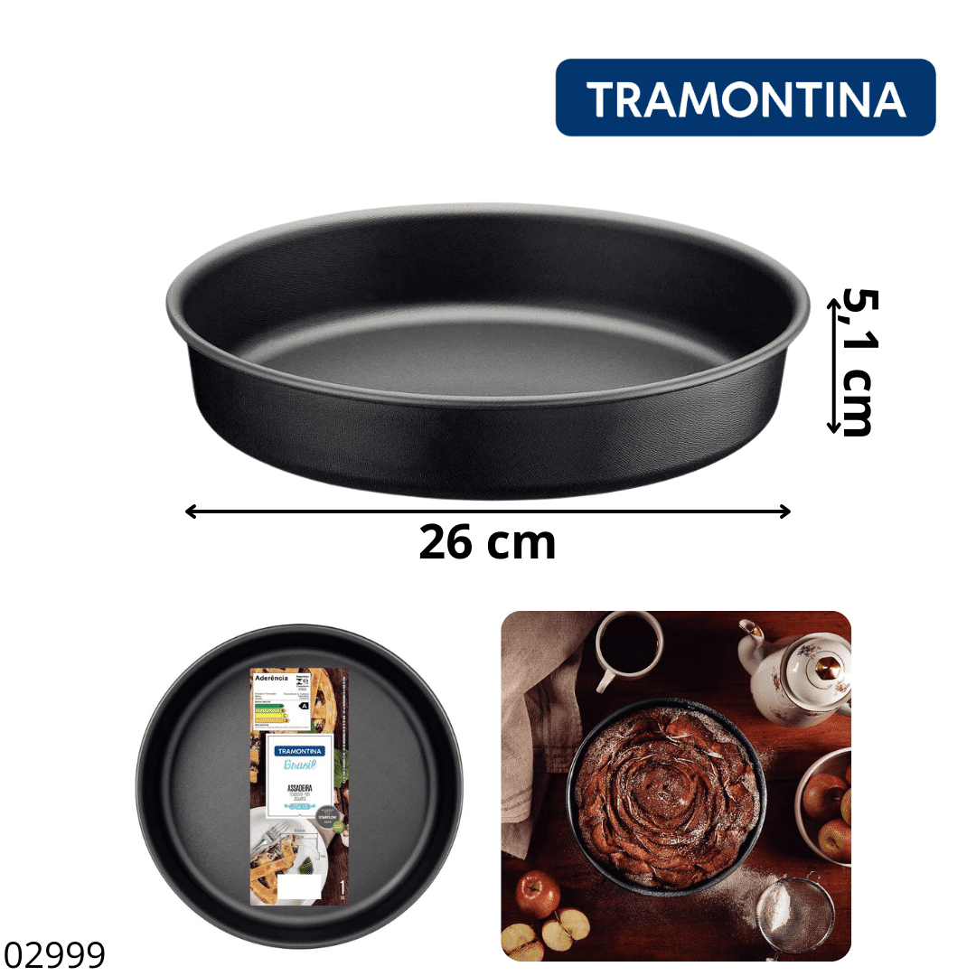 صينية الخبز الدائرية من ترامونتينا برازيل، المصنوعة من الألومنيوم والمطلية داخليًا وخارجيًا بطبقة ستارفلون ماكس غير لاصقة بلون الجرافيت، بقطر 26 سم وسعة 2.4 لتر، منتج عملي ومتعدد الاستخدامات، مناسب لتحضير مجموعة واسعة من الوصفات، المالحة والحلوة على حد سواء. تتميز هذه الصينية المصنوعة من الألومنيوم والمطلية داخليًا وخارجيًا بطبقة ستارفلون ماكس غير لاصقة، بخصائص تضمن خبزًا سريعًا ومتساويًا، وتمنع الالتصاق، وتزيد من متانتها، كما أنها آمنة تمامًا على الصحة. يمكن غسلها في غسالة الأطباق، مما يجعل تنظيفها أسهل. مع ترامونتينا، ما عليك سوى دخول المطبخ، والنجاح مضمون!
