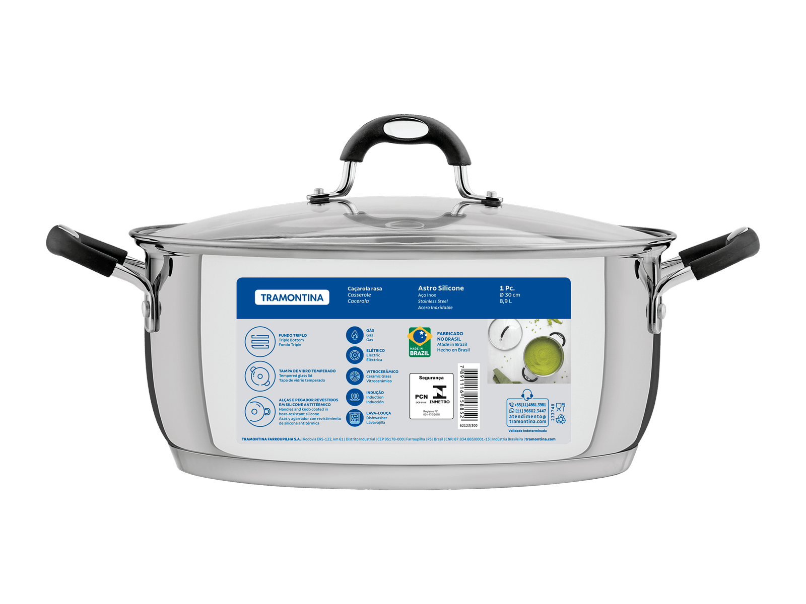 قدر ترامونتينا ستانلس ستيل مع مقابض سيليكون مقاوم للصدأ وصحي 100% وقياس 30 سم 8.5 لتر