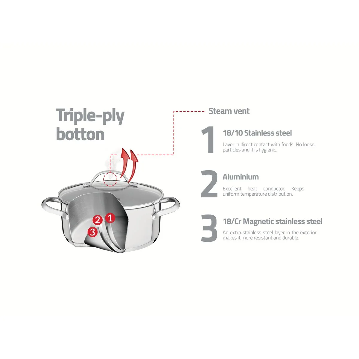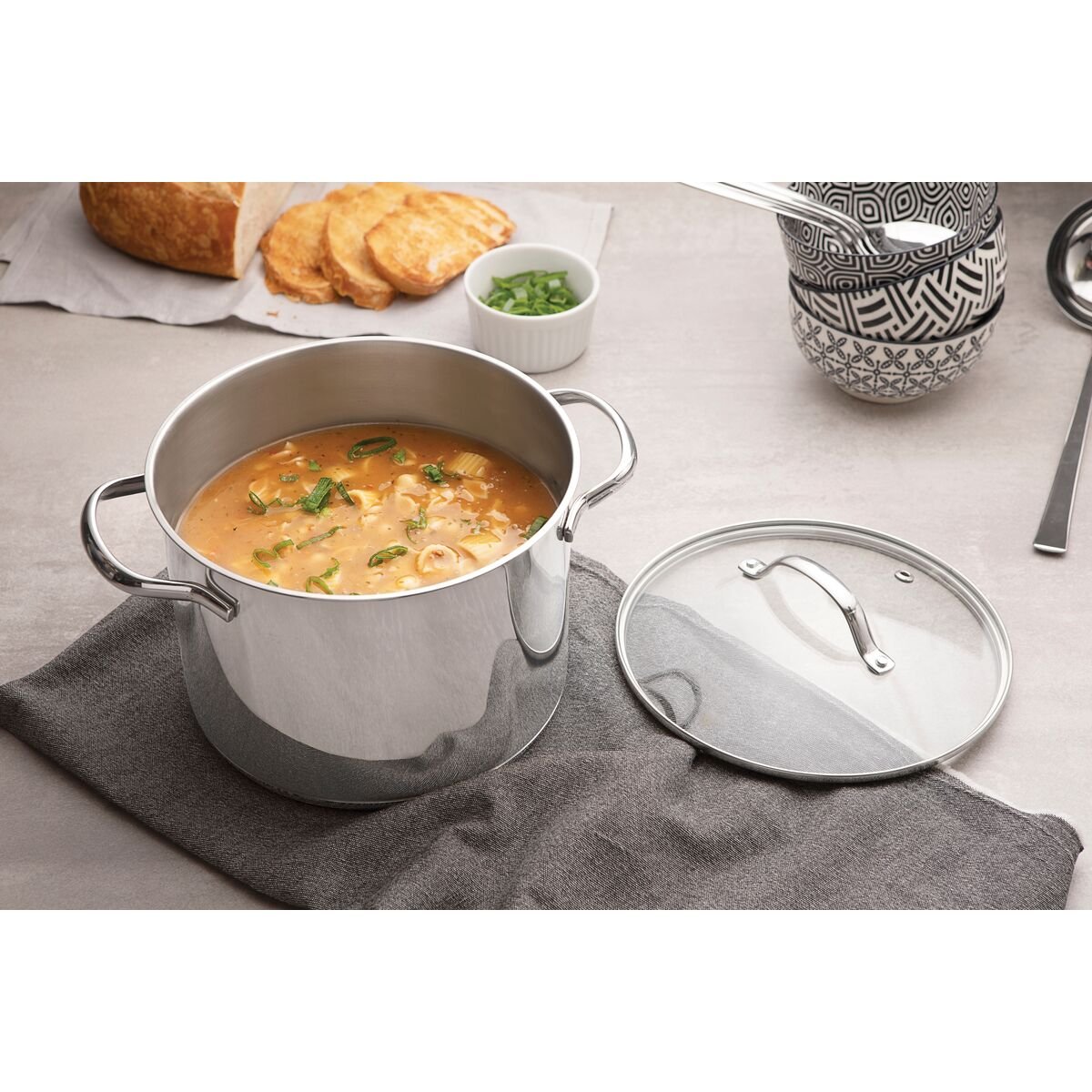 قدر طهي من الفولاذ المقاوم للصدأ من ترامونتينا أونا بقاعدة ثلاثية الطبقات وغطاء زجاجي، 24 سم وسعة 6.1 لتر