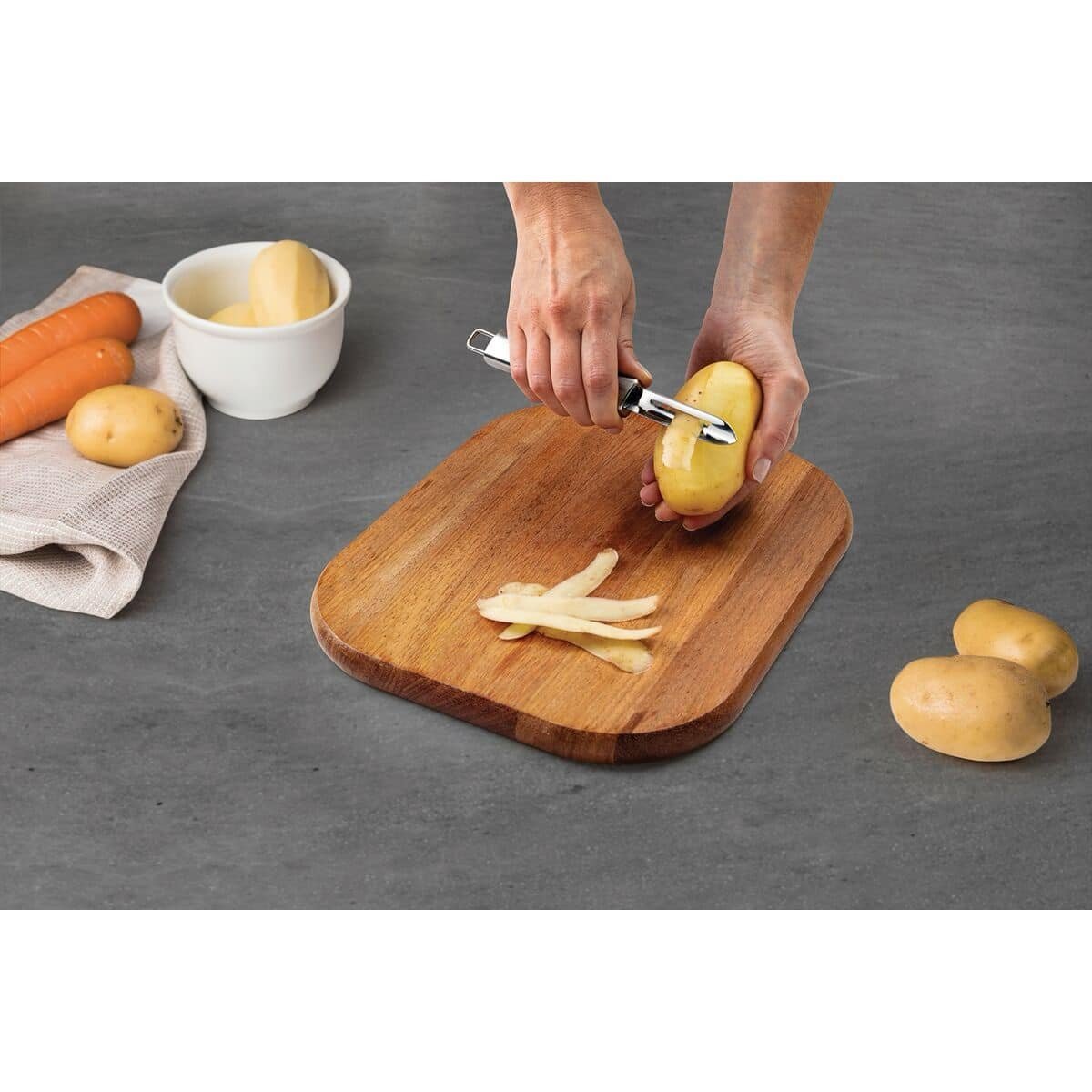 مع مقشرة البطاطس المصنوعة من ستنلس ستيل المقاوم للصدأ من ترامونتينا، سيكون تحضير وجباتك أسهل بكثير. هذه القطعة مثالية لتقشير البطاطس بسهولة وفعالية. مصنوعة بالكامل من الفولاذ المقاوم للصدأ، مما يجعلها متينة للغاية ومقاومة. كما أنها آمنة للغسل في غسالة الأطباق. بفضل ترامونتينا، سيصبح مطبخك أكثر راحةً وفعالية!