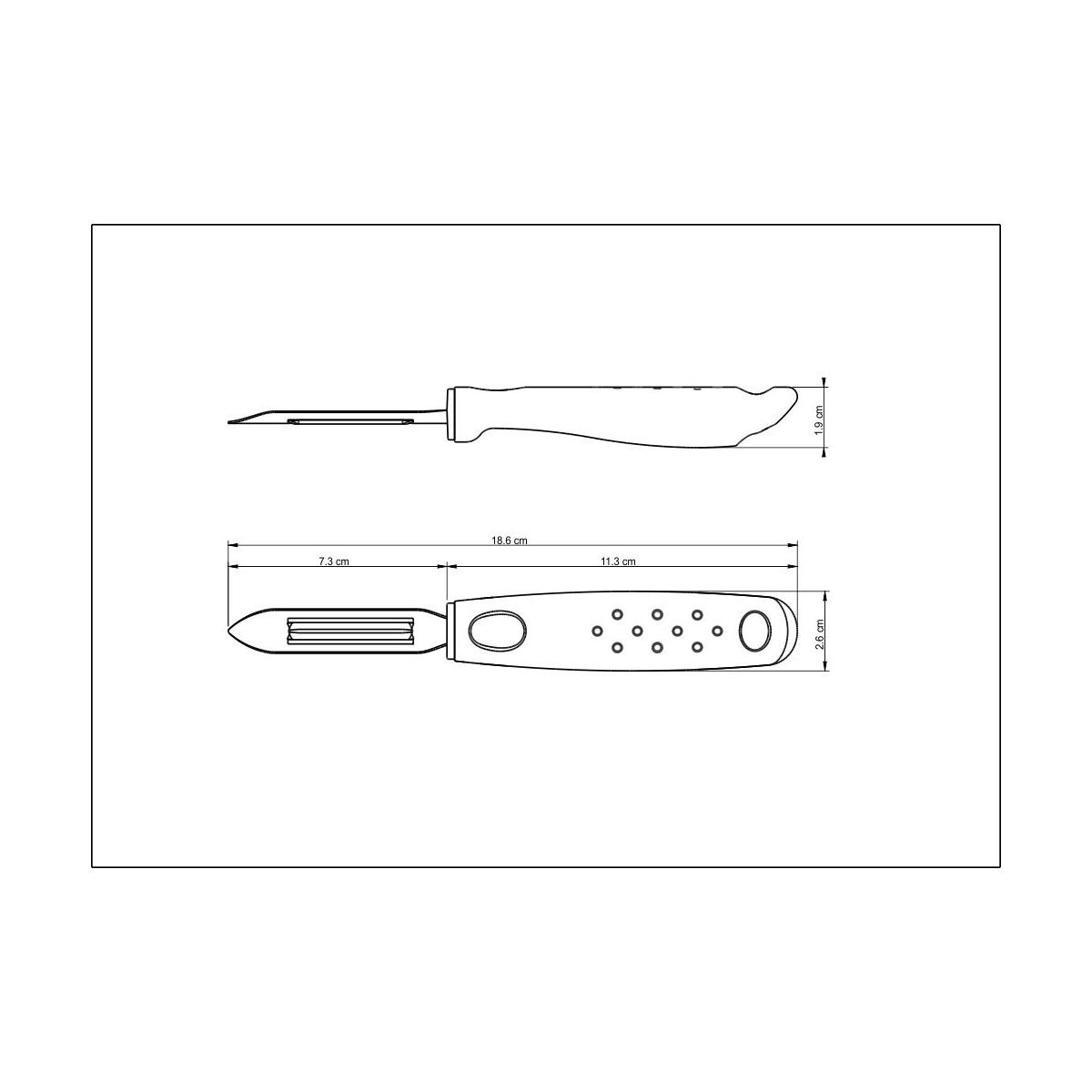 أداة بشفرة من الستنلس ستيل المقاوم للصدأ تضمن مقاومة عالية أثناء الاستخدام. مقبضها المصنوع من البولي بروبيلين مزود بفتحة تسمح بتعليقها في مطبخك. آمنة للغسل في غسالة الأطباق، مما يُسهّل حياتك اليومية.