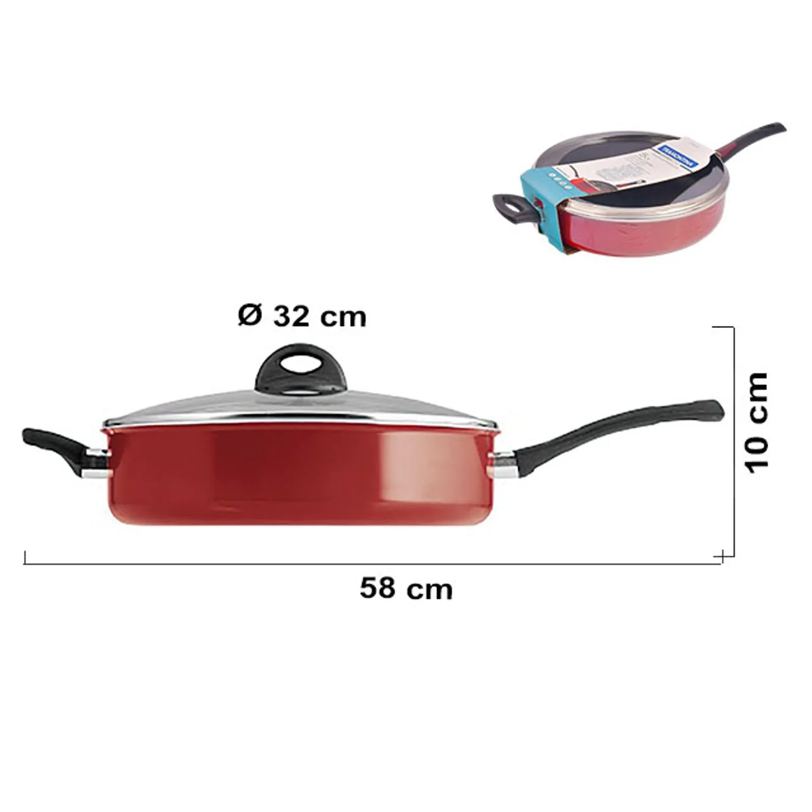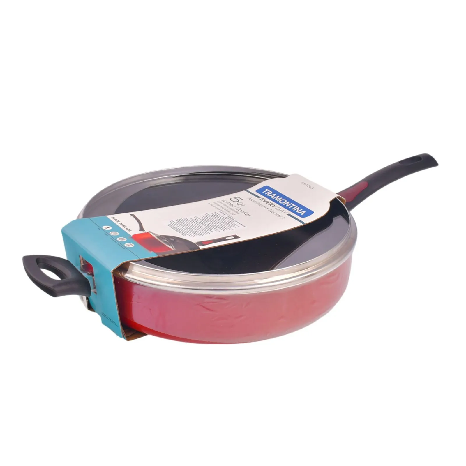مقلاة ترامونتينا المصنوعة من الألومنيوم المستقيم، بطول 30 سم وسعة 4.9 لتر، والمُزودة بطبقة داخلية غير لاصقة من ستارفلون ماكس وطبقة خارجية من السيليكون الأحمر، ستُحدث نقلة نوعية في طريقة تحضير وجباتك. مصنوعة من الألومنيوم، تضمن لك عملية أكبر في روتينك اليومي، حيث تُقدم لك طهيًا سريعًا ومتساويًا. الجزء الداخلي مطلي بطبقة ستارفلون ماكس غير اللاصقة، مما يمنع التصاق الطعام بالسطح، مما يجعلها أكثر متانة، وسهلة التنظيف، وآمنة على صحتك. بالإضافة إلى هذه الميزات، تتميز بطبقة خارجية من السيليكون الأحمر، مما سيجعل مطبخك أكثر جمالًا وأناقة!