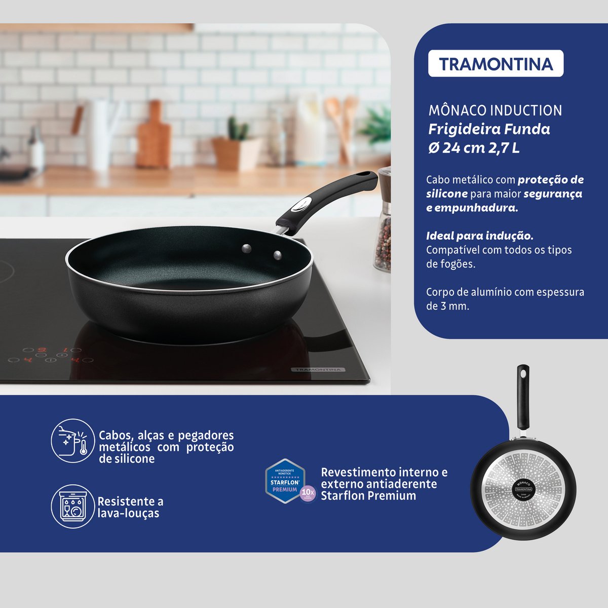 هيكل من الألومنيوم بسمك 3 مم، يضمن طهيًا سريعًا ومتساويًا. طلاء ستارفلون بريميوم غير اللاصق من الداخل والخارج سهل التنظيف، ومتين، وغير ضار بالصحة، لأنه خالٍ من حمض بيرفلورو الأوكتانويك (PFOA). مقبض معدني مطلي بالسيليكون يقلل من انتشار الحرارة لمزيد من الأمان والراحة في الاستخدام. آمن للاستخدام في غسالة الأطباق لتسهيل روتينك اليومي. ملامسة حثية، 16.6 سم. مناسب للاستخدام على المواقد التالية: الغاز، والكهرباء، والسيراميك الزجاجي – عنصر تسخين كهربائي، والحث.