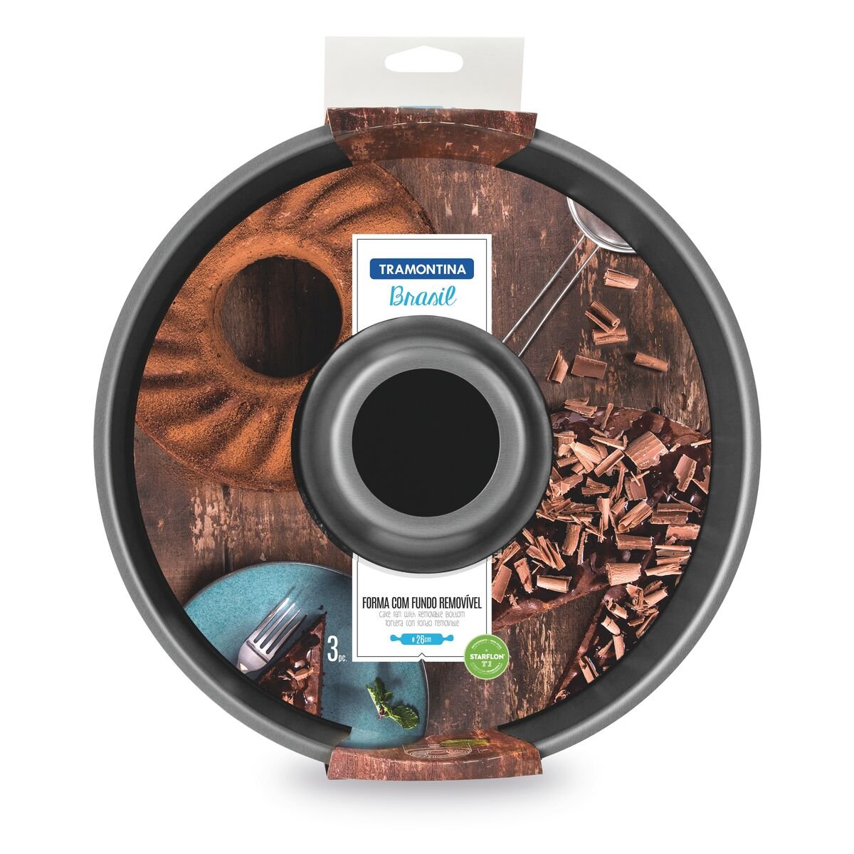 قالب كيك من الألمنيوم من ترامونتينا البرازيل مع طلاء غير لاصق وسفلي قابل للإزالة من ستار فلون ، 26 سم ، 3،3 لتر