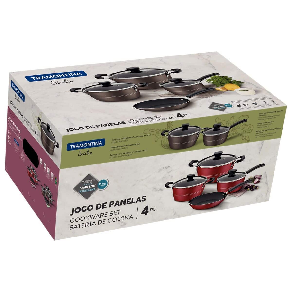 سيكون مطبخك أكثر اكتمالا وأناقة مع طقم أواني الطهي المصنوع من الألمنيوم والبندق من ترامونتينا سيسيليا مع طلاء ستارفلون الداخلي والخارجي غير اللاصق ، 4 قطع! تحتوي على قطع مصنوعة من الألومنيوم مع طلاء Starflon داخلي وخارجي ممتاز غير لاصق ، مما يوفر طهيًا موحدًا ، ويمنع الطعام من الالتصاق بسطحه ويجعله أكثر مقاومة ومتانة. تأتي أواني الصلصة والكسرولات بغطاء زجاجي مقسّى مع فتحة تهوية للبخار وحافة من الفولاذ المقاوم للصدأ ومقابضها ومقابضها مصنوعة من مادة مقاومة للحرارة وتوفر استخدامًا أكثر أمانًا وراحة. بالإضافة إلى ذلك ، فهي سهلة التنظيف وغسالة الصحون أيضًا. الخيار الأمثل للطهي العملي ولإضفاء المزيد من الجمال على مطبخك!