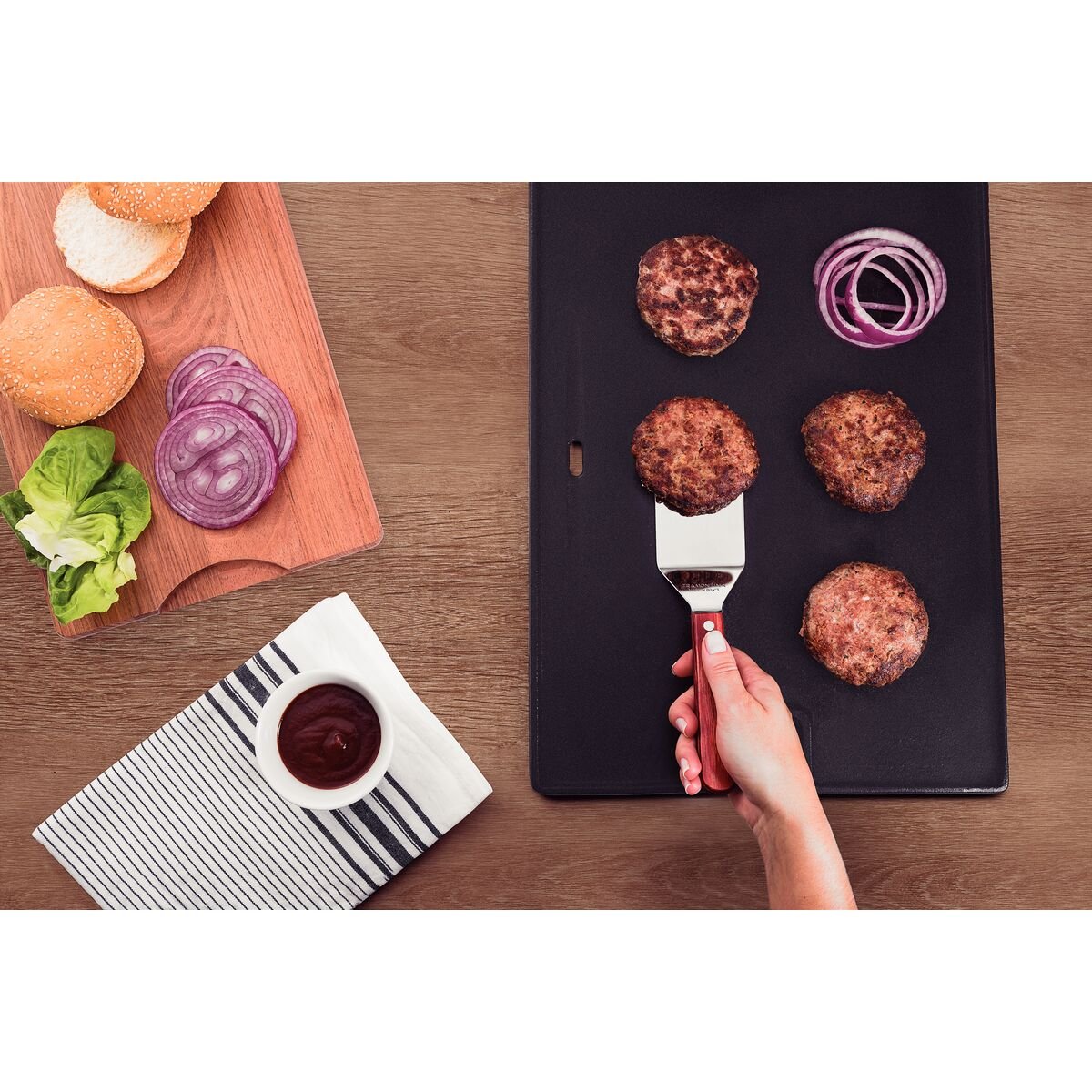 لا تزال الوجبات غير الرسمية بحاجة إلى أدوات مائدة وسكاكين وأواني عالية الجودة. هذا هو السبب في أن خط Polywood له شكل وسماكة شفرات من الفولاذ المقاوم للصدأ لضمان المتانة مع منع التشوهات. تضيف المعالجة الحرارية متانة لحافة الشفرة ، كما أن المقبض الخشبي المعالج والمرفق بمسامير من الألومنيوم مريح في الاستخدام. مع ضمان لمدة خمس سنوات ، تظل مقاومة للصدمات ودرجات الحرارة المرتفعة ، ويمكن تنظيفها في غسالة الأطباق.
