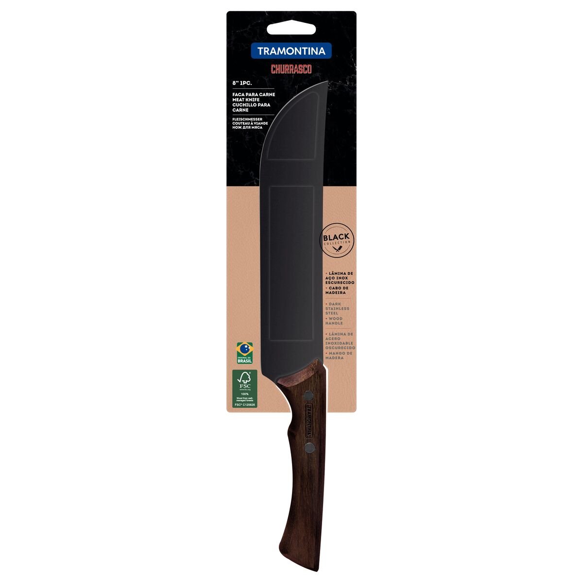سكين لحم من ترامونتينا تشوراسكو بشفرة ستانلس ستيل اسود ومقبض خشبي 8 انش Churrasco