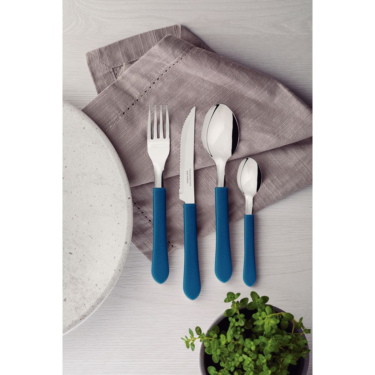 اجلب بهجة الألوان إلى طاولتك. تحتوي مجموعة أدوات المائدة Leme على مقابض متينة وملونة من البولي بروبيلين. السكاكين والشوك والملاعق المصنوعة من الفولاذ المقاوم للصدأ شديدة المقاومة والمتانة. تتلقى شفرات السكاكين معالجة حرارية ينتج عنها حافة تقطيع أكثر مقاومة وطويلة الأمد. هذه العناصر آمنة لغسالة الصحون.