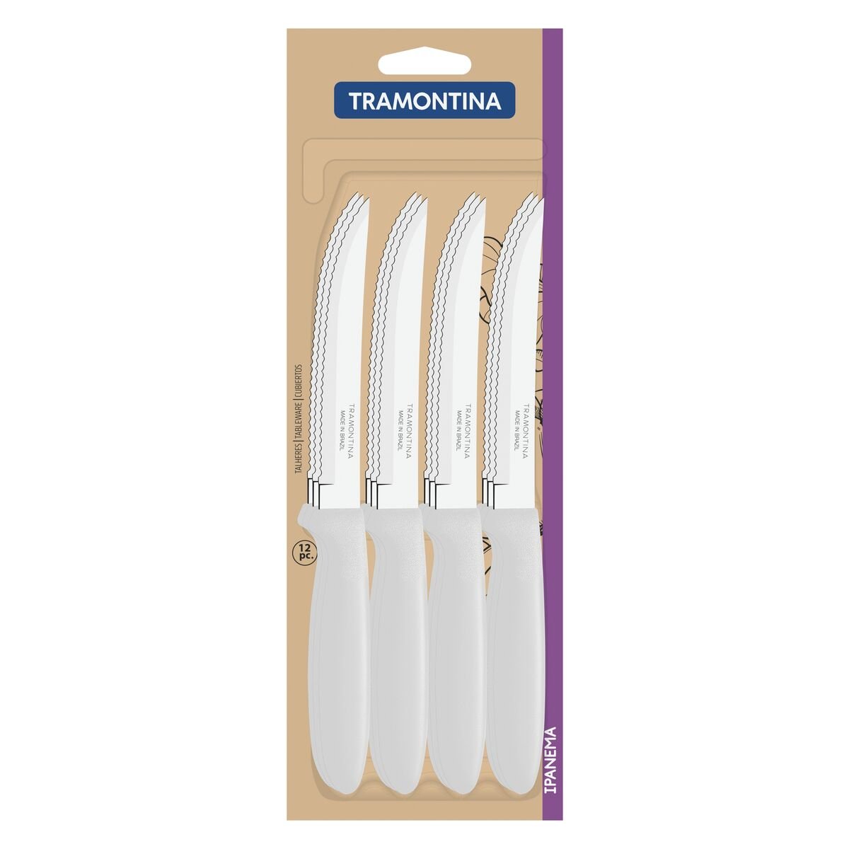 طقم 12 قطعة سكاكين ستيك ستانلس ستيل مع مقابض بيضاءه من البولي بروبيلين Ipanema