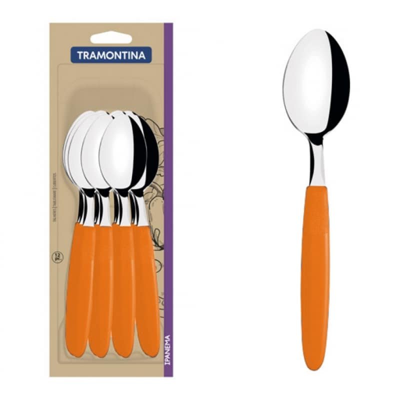 طقم ملاعق طعام Tramontina Ipanema ستانلس ستيل مع مقابض بولي بروبيلين برتقالي، 12 قطعة