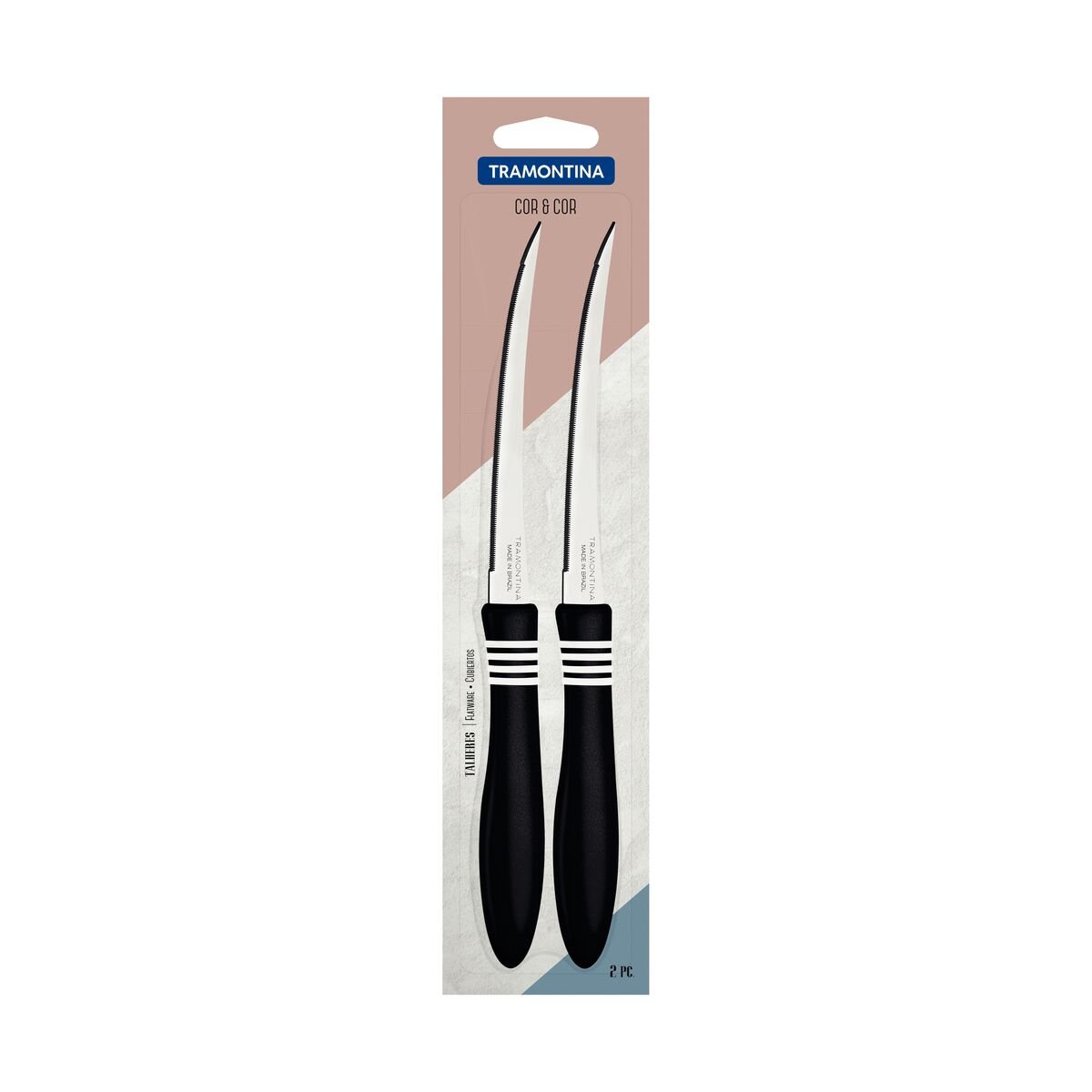 أضف لمسة جريئة إلى وجباتك من خلال إحضار أدوات المائدة من Cor & Cor إلى طاولتك. مجموعات ألوان مختلفة مع لمسات مطاطية تشكل مقابض البولي بروبلين. تمنع سماكة الفولاذ وشكل القطع التشوهات. تتمتع شفرات السكاكين بمعالجة حرارية خاصة ، مما ينتج عنه حافة تقطيع متينة تدوم طويلاً. القطع آمنة لغسالة الصحون.