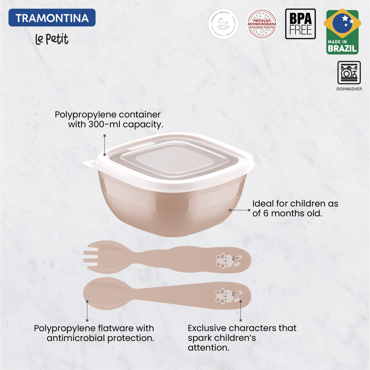 سوف تكون وجبات طفلك أكثر بهجة مع طقم الأطفال Tramontina Le Petit pink 3-Piece. تتكون من وعاء وأدوات مائدة من البولي بروبلين مع حماية من الميكروبات تمنع نمو الفطريات والبكتيريا ، المجموعة مثالية لتخزين وجبات أطفالك ، سواء لتناول الطعام في المنزل أو لتناول وجبة خفيفة أثناء الخروج ، لأن الحاوية يمكن وضعها في الميكروويف ، الفريزر أو الثلاجة. المجموعة أيضًا آمنة للغسل في غسالة الصحون ، مما يسهل عملية التنظيف. اختر ترامونتينا وتأكد من روتين أكثر هدوءًا ومتعة مع طفلك!