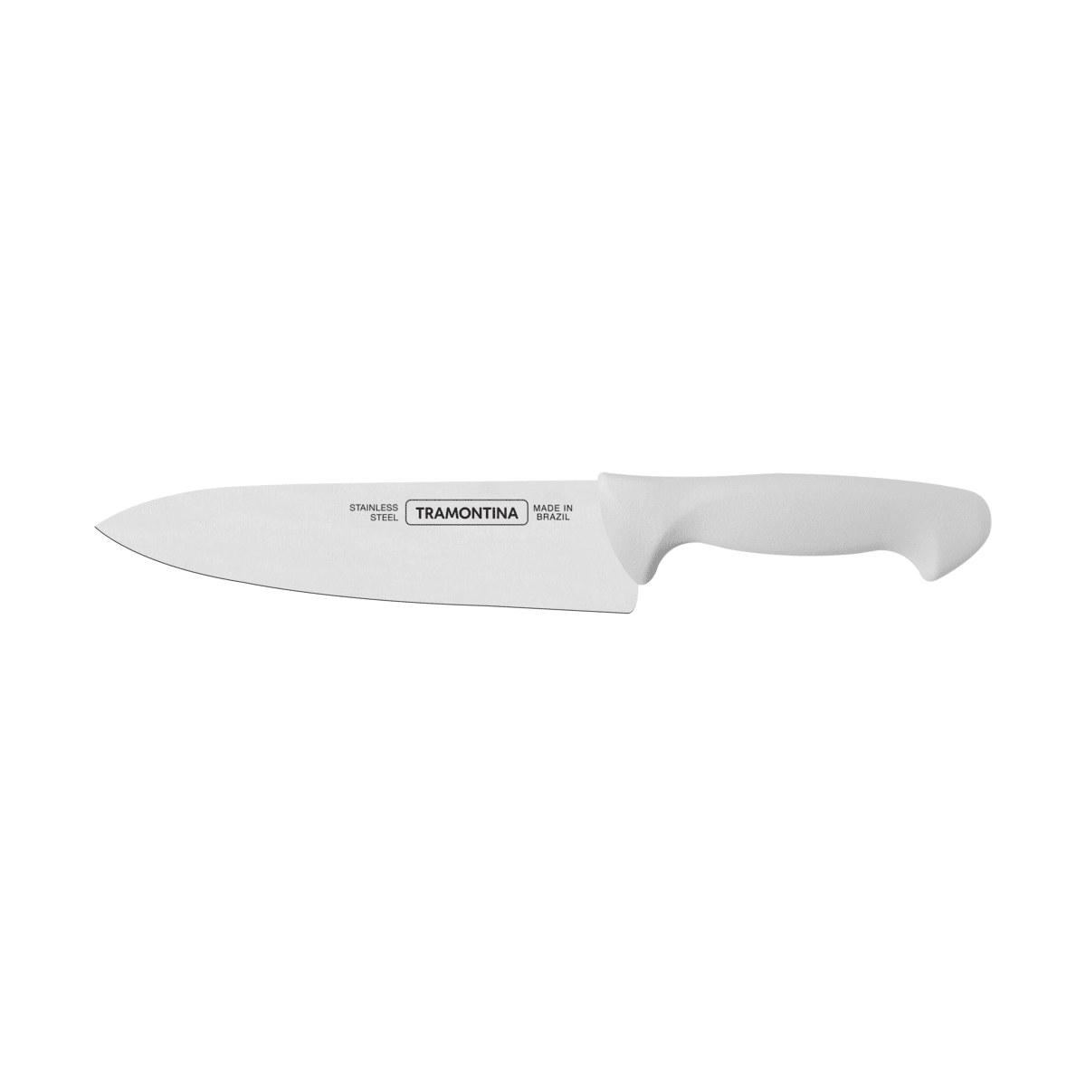 أضف جودة ومقاومة سكاكين ترامونتينا إلى مطبخك. سكين طاهي ترامونتينا الفاخر المصنوع من الفولاذ المقاوم للصدأ مقاس 8 بوصات مع مقبض أبيض من مادة البولي بروبيلين بتصميم معاصر لمساعدتك في إعداد مجموعة متنوعة من الأطباق. مصنوعة من شفرة فولاذية مقاومة للصدأ مقاس 8 بوصات ومعالجة بالحرارة ومقبض أبيض من مادة البولي بروبيلين بقوام خاص ومريح الشكل ، هذا السكين هو الخيار الأفضل ليكون دائمًا في متناول يدك في مطبخك. إنه يضمن حافة قطع دقيقة ومتينة للغاية وقبضة ثابتة ومريحة ، مما يجعل مهمة التقطيع الخاصة بك أسهل كثيرًا. هذا السكين عالي الجودة سهل التنظيف وغسله في غسالة الأطباق. خط Premium الخاص بنا هو الخيار الأفضل لأولئك الذين يريدون الأفضل فقط لمطبخهم!