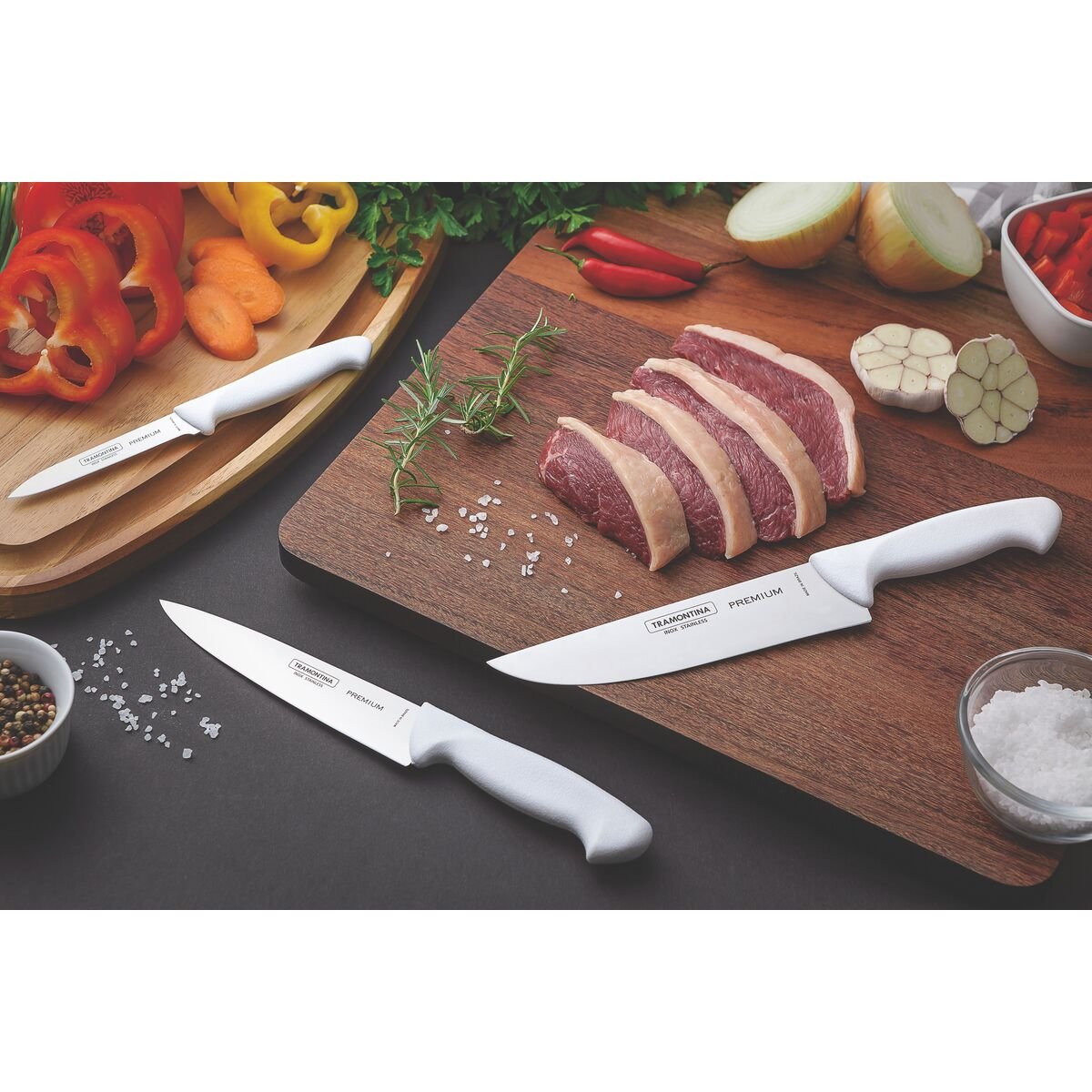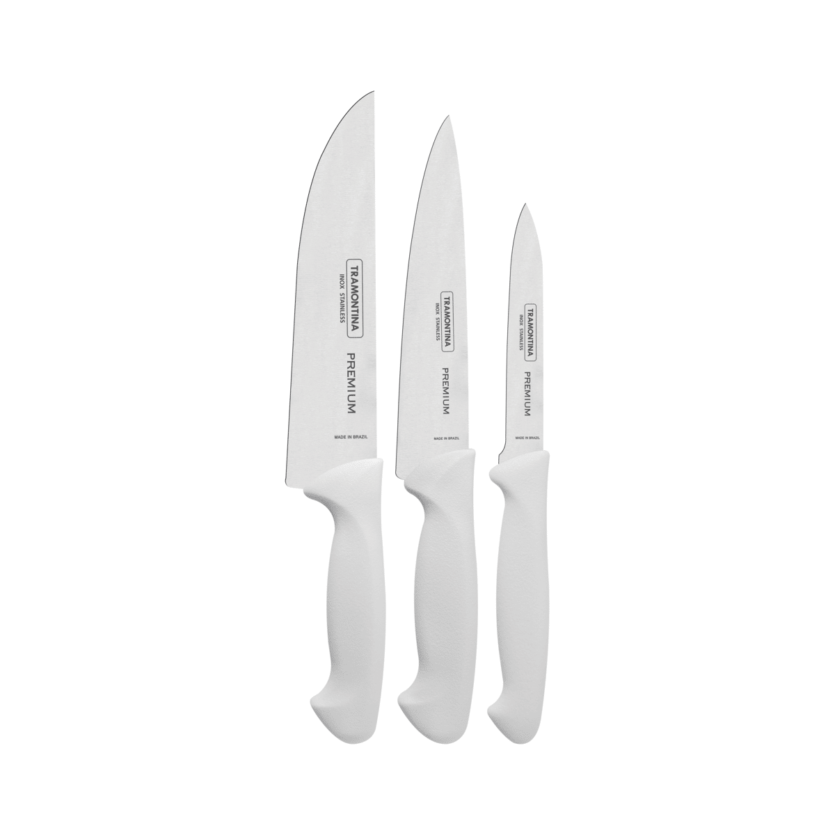 طقم سكاكين ستانلس ستيل ترامونتينا فاخر مع مقابض بيضاء من البولي بروبلين ، 3 قطع
