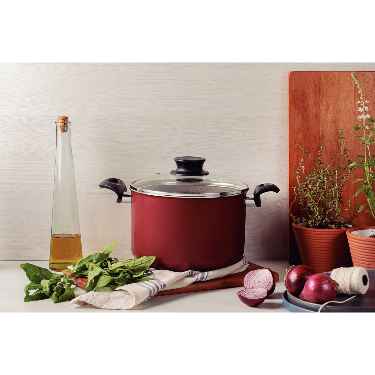 قدر عالي ترامونتينا من الألومنيوم غير لاصق، أحمر، مع غطاء زجاجي، 28 سم، 11.8 لتر