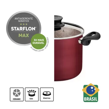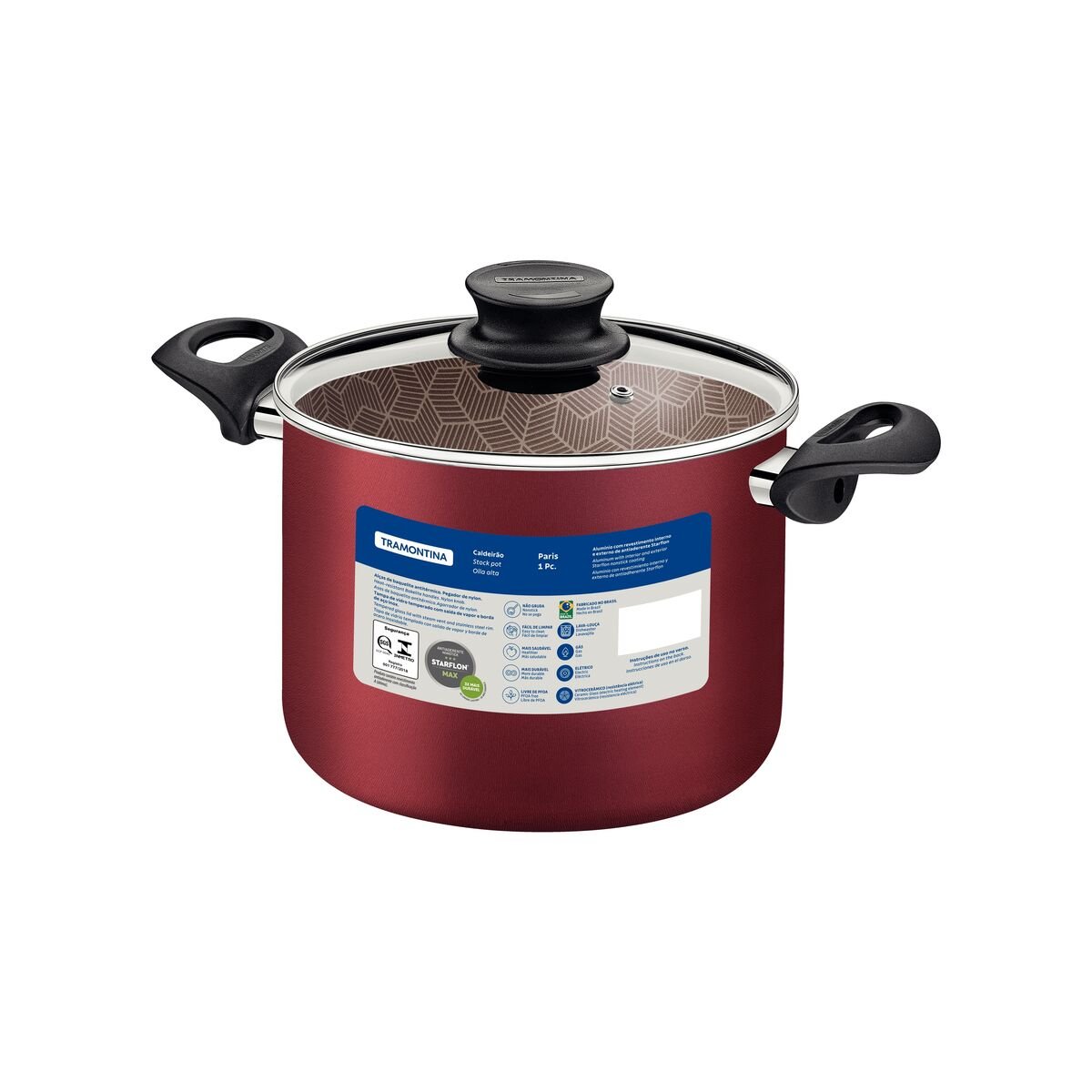 لتحضير وجباتك بطريقة عملية أكثر، اعتمد على قدر ترامونتينا باريس المصنوع من الألومنيوم، والمُغطى بطبقة ستارفلون ماكس الداخلية والخارجية غير اللاصقة باللون الأحمر، وغطاء زجاجي، بقطر 26 سم، وسعة 9.6 لتر. مثالي لتحضير الحساء والوصفات الأخرى بكميات كبيرة، بهيكل من الألومنيوم وطبقة ستارفلون ماكس غير اللاصقة. بفضل هذه الخصائص، يُطهى القدر الطعام بالتساوي دون أن يلتصق بالسطح. مقابضه مصنوعة من الباكليت المقاوم للحرارة، ويأتي بغطاء زجاجي يُسهّل عملية الطهي. بالإضافة إلى كل هذه الميزات، فهو سهل التنظيف ويمكن وضعه في غسالة الأطباق، مما يُسهّل مهام مطبخك!