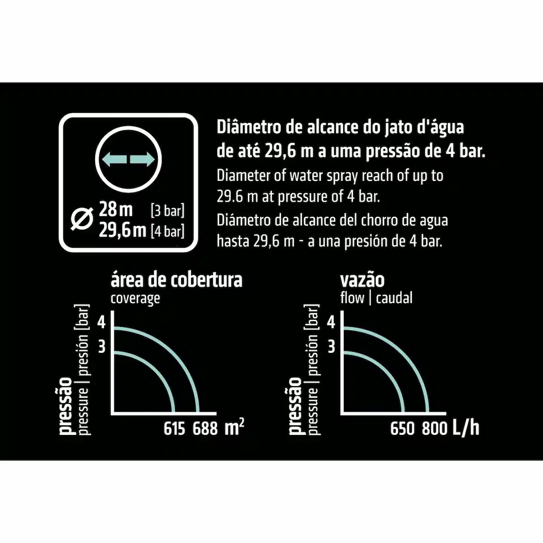 – منتج مصنوع من مواد خام عالية الجودة لري دقيق وموثوق. – هيكل بلاستيكي عالي المقاومة وقاعدة تثبيت مثبتة في الأرض. – يمكن ضبط رذاذ الماء أفقيًا بين 30 درجة و 360 درجة. – يغطي مساحة تصل إلى 688 م 2 أو قطر رذاذ الماء يصل إلى 29.6 م – بضغط 4 بار. – يمكن توصيل الرش الدافع بـ 1/2 “، 5/8” و 3 …