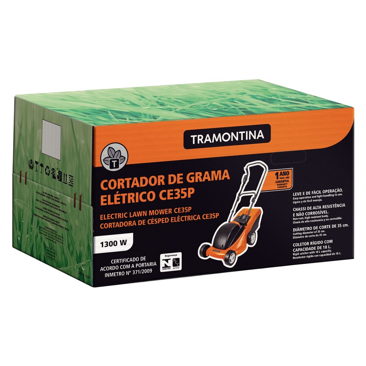 ماكنة العشب الكهربائية CE35P من ترامونتينا بقطر قطع 350 مم ، وماسك العشب الصلب والهيكل البلاستيكي 1300 وات 220 فولت 50 هرتز