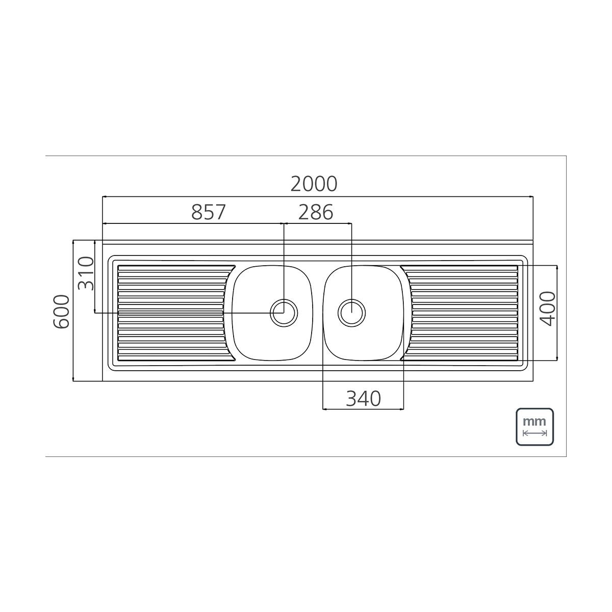حوض مع 2 سلطانية مركزية + مجفف صحون.
