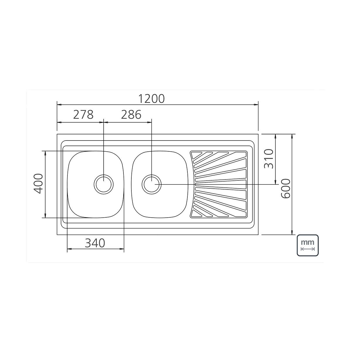 سنك حوضين وجناح 120×60 سم