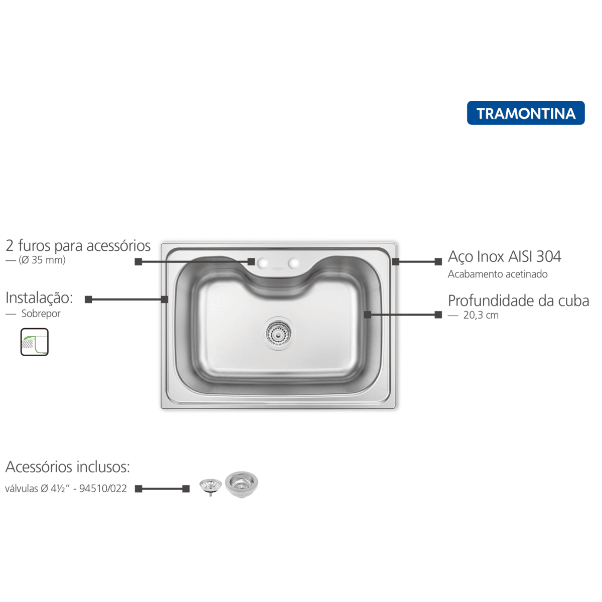 حوض ترامونتينا 69 × 49 سم Morgana 60 FX بلمسة نهائية من الستانلس ستيل مع صمام