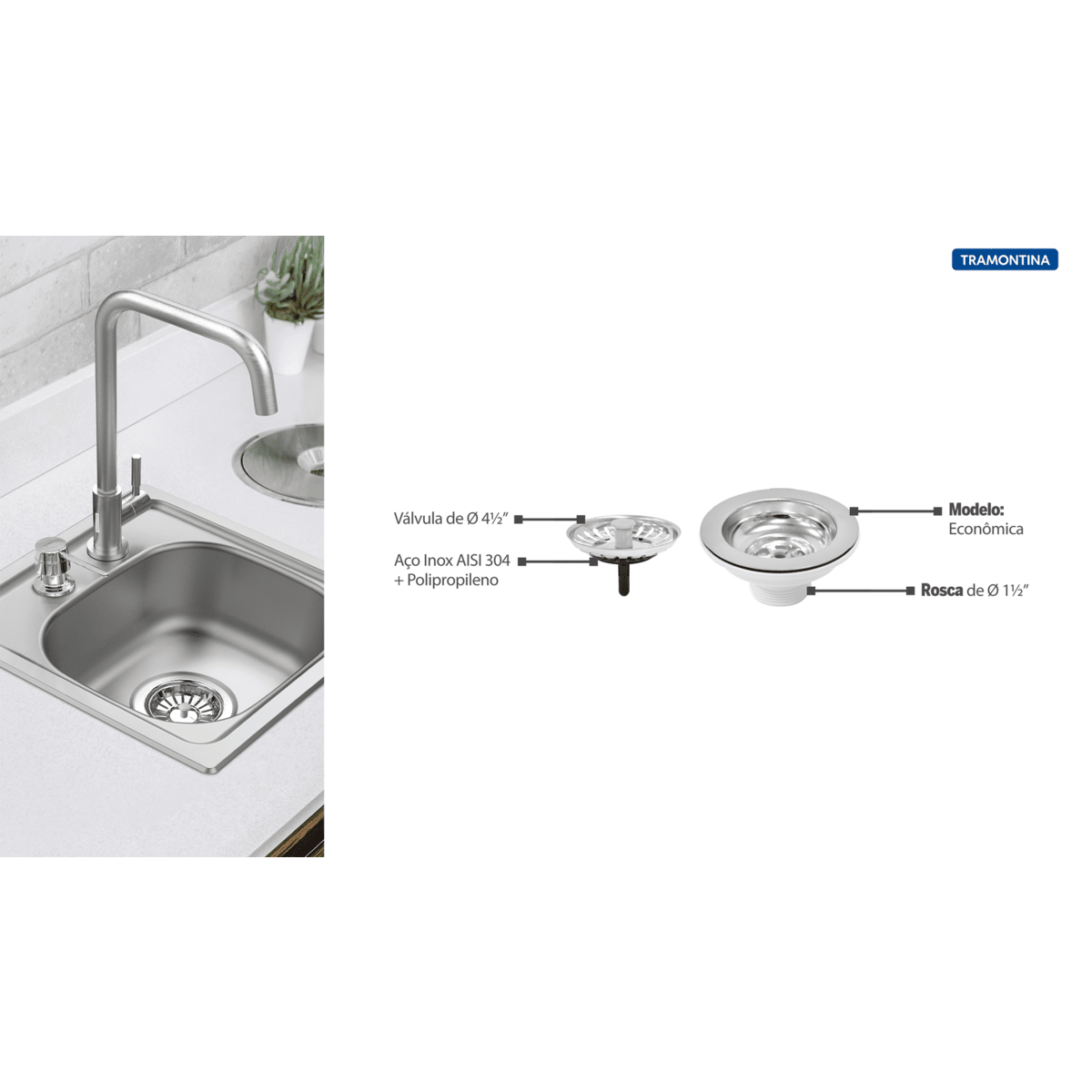 ترامونتينا 4.1 / 2 بوصة من الفولاذ المقاوم للصدأ والبولي بروبلين للأحواض والأحواض